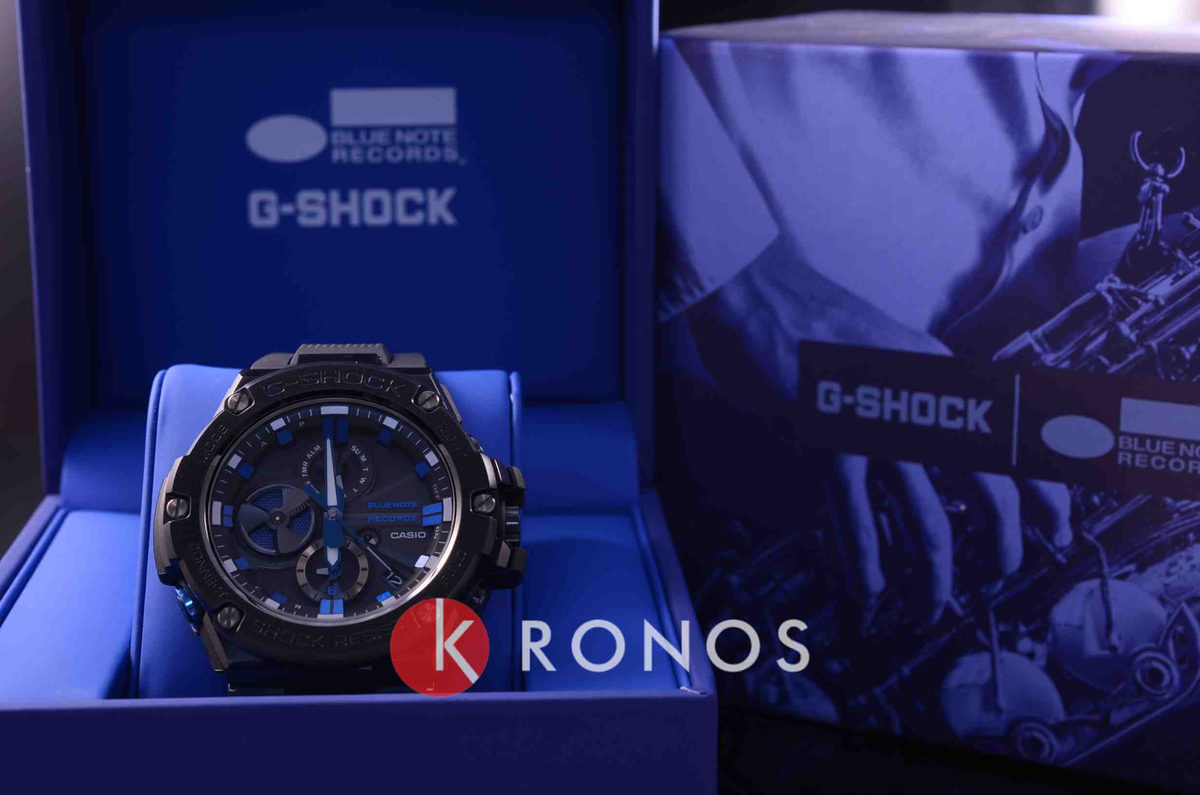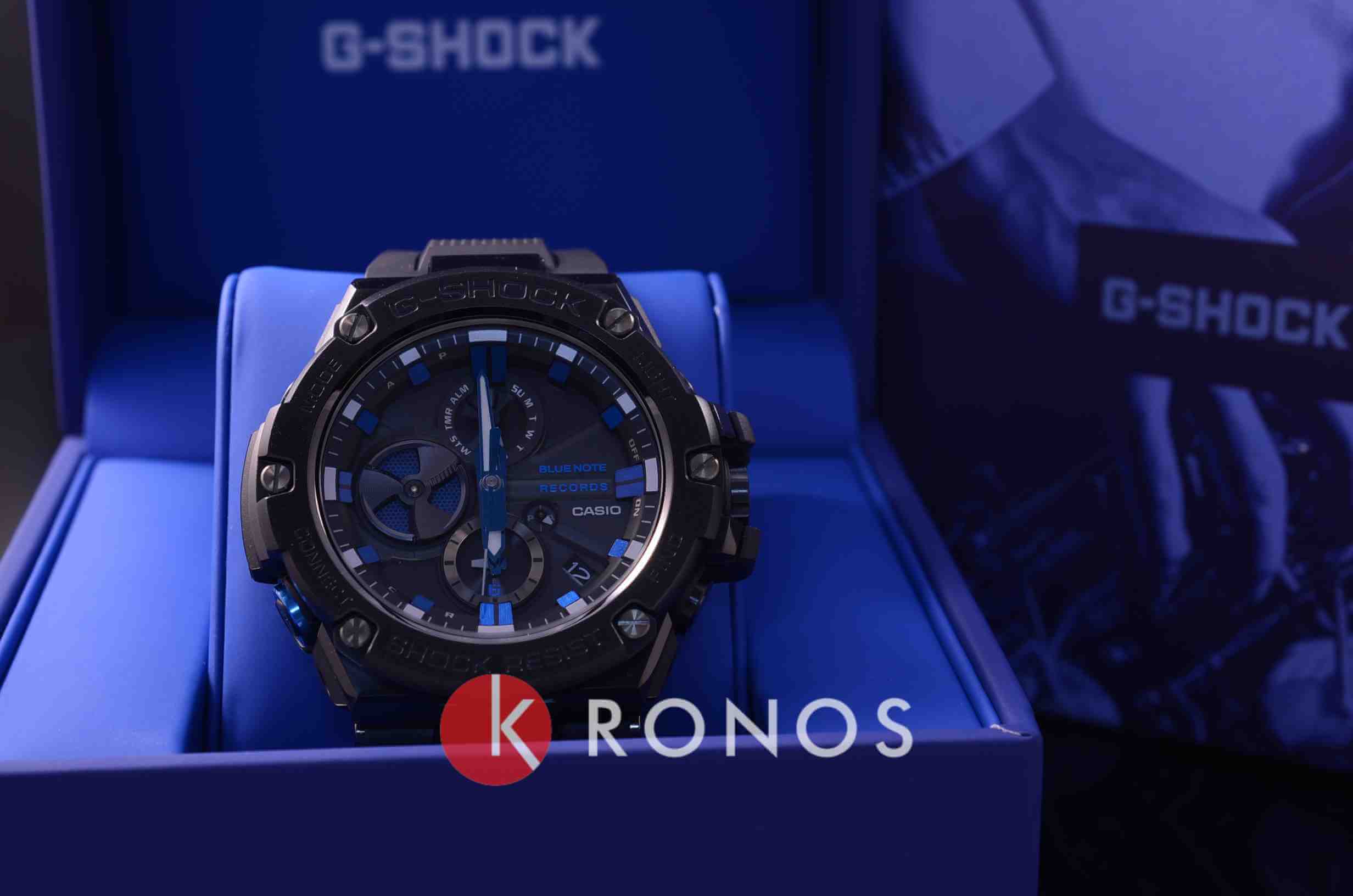 Наручные часы обладают одним из самых тонких корпусов среди стальных моделей G-Shock. Чёрное матовое исполнение имеет яркие акценты в виде синей металлической застёжки и деталей циферблата. Премиальный аксессуар особенно подойдёт тем, кто неравнодушен к оригинальным предметам и любит создавать эксклюзивные образы. Модель оснащена солнечной батарейкой - , индикатор заряда батарейки показывает состояние аккумулятора. Противоударный корпусУдаропрочный корпусМеханизм заключён в корпус, выполненный из современных материалов, устойчивых к ударам, механическим повреждениям и падению с высоты: инновационный пластик, карбон, нержавеющая сталь, титан. из пластика и нержавеющей стали 316L с IP-покрытиемIP-покрытиеМетод ионного напыления. Демонстрирует повышенную устойчивость к истиранию, окислению и химическим веществам. Под воздействием высокого давления и температуры около 1500°C молекулы металла надёжно соединяются с частицами корпуса часов.. Минеральное стекло. Задняя крышка с логотипом Blue Note Records. СветодиоднаяСветодиодная подсветкаСветодиодная или LED-подсветка обеспечивает появление яркого холодного свечения за счёт LED-элементов - маленьких лампочек. Они потребляют минимальное количество энергии, чаще всего можно встретить 1 светодиод, в нижней части циферблата. и люминесцентная подсветкаЛюминесцентное покрытиеПозволяет считывать показания времени в темноте. Производители наносят на стрелки, часовые индексы, безель или поверхность циферблата светонакопительный состав, дающий холодное свечение.. Ремешок из полимерного материала. Завинчивающаяся заводная головка. Технология BluetoothBluetoothСовременная технология, позволяющая синхронизировать часы с телефоном и переносить данные. Часы с Bluetooth расширяют возможности вашего смартфона и делают его использование ещё более удобным., секундомер, будильник, хронографХронографФункция позволяет измерять отрезки времени с особой точностью: часы, минуты, секунды. Верным признаком хронографа является наличие на циферблате 3 дополнительных окошек-счётчиков., мировое времяМировое время Полезное часовое усложнение, отображающее время в основных городах и известных областях по всему миру, оно связано с часовыми поясами, удобно для путешественников и бизнесменов. , автоматический календарь, таймер. Габариты: 58,1 x 53,8 x 14,1 мм.