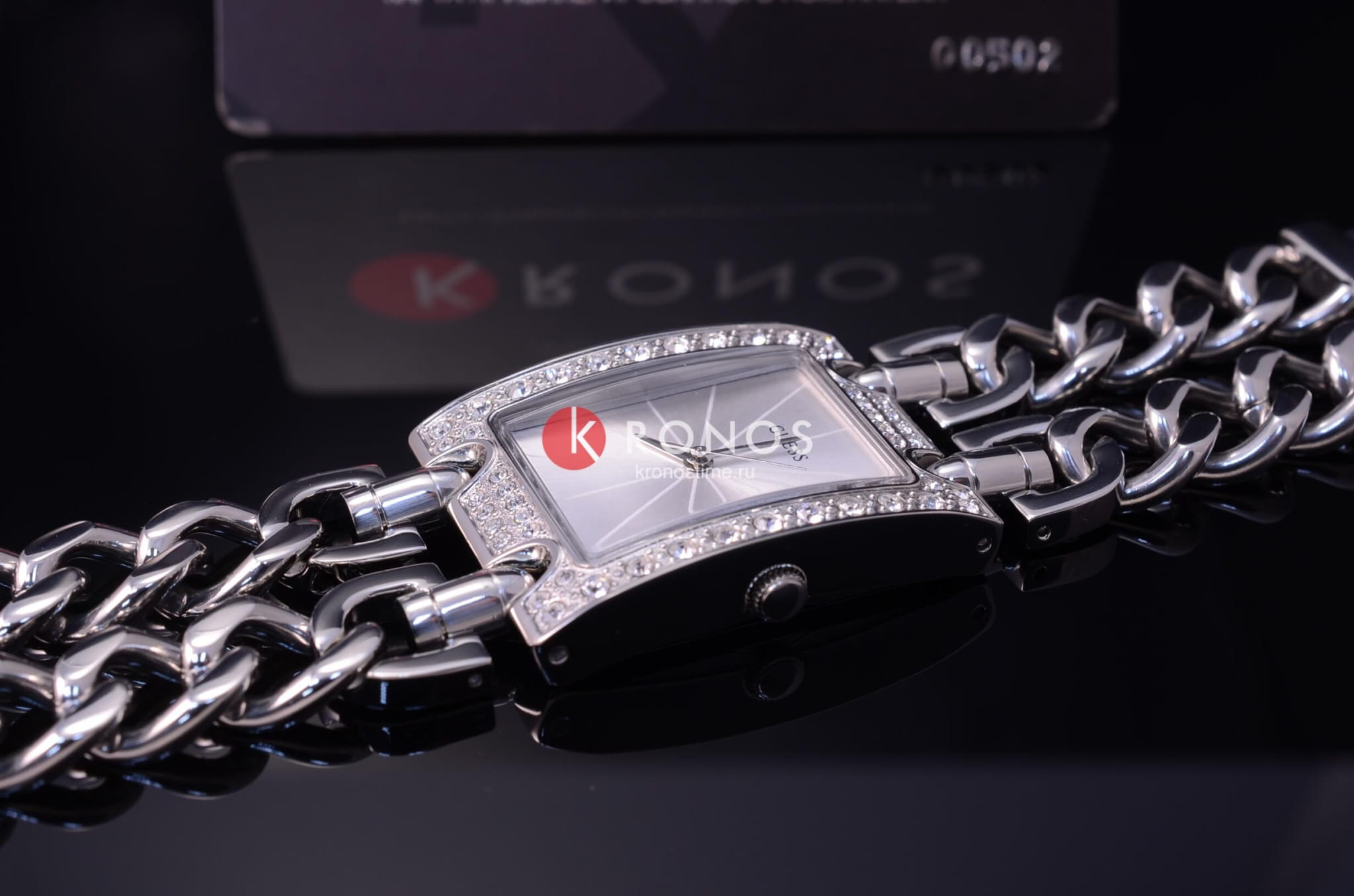 Яркий блестящий браслет с двумя линиями звеньев. Стальной корпус прямоугольной формы. Россыпь из кристаллов добавляет привлекательности стильному аксессуару. Аналоговый способ отображения времени. Оригинальный дизайн временных меток. Кварцевый механизм. Минеральное стекло. Водонепроницаемость в 10 WR.
