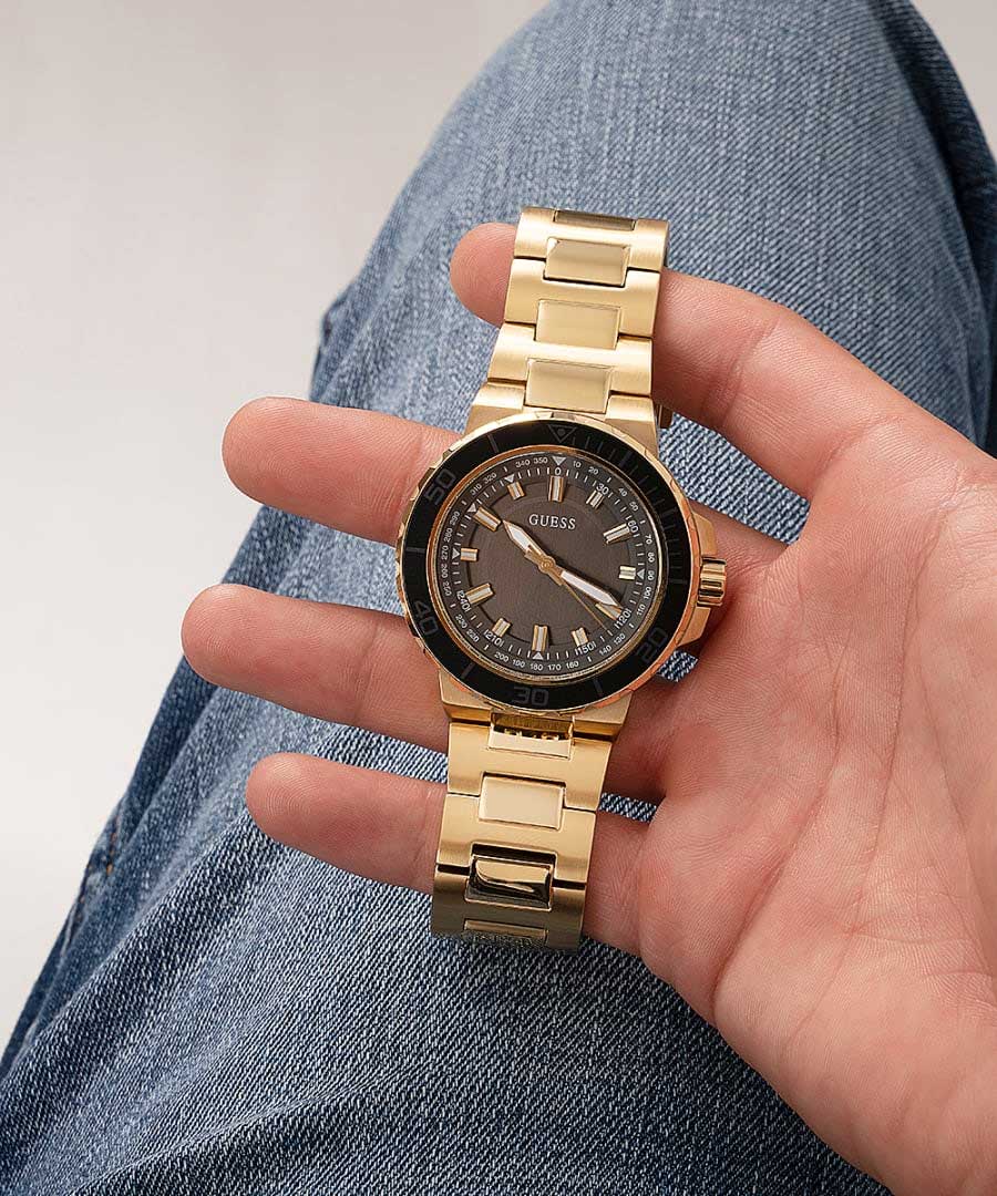 Мужские наручные часы Guess Sport Steel GW0426G2, кварцевый механизм с высокой точностью. Класс водозащиты: 50 метров, позволит защитить корпус от случайных брызг или капель дождя. Корпус часов изготовлен из стали, золотистого цвета.