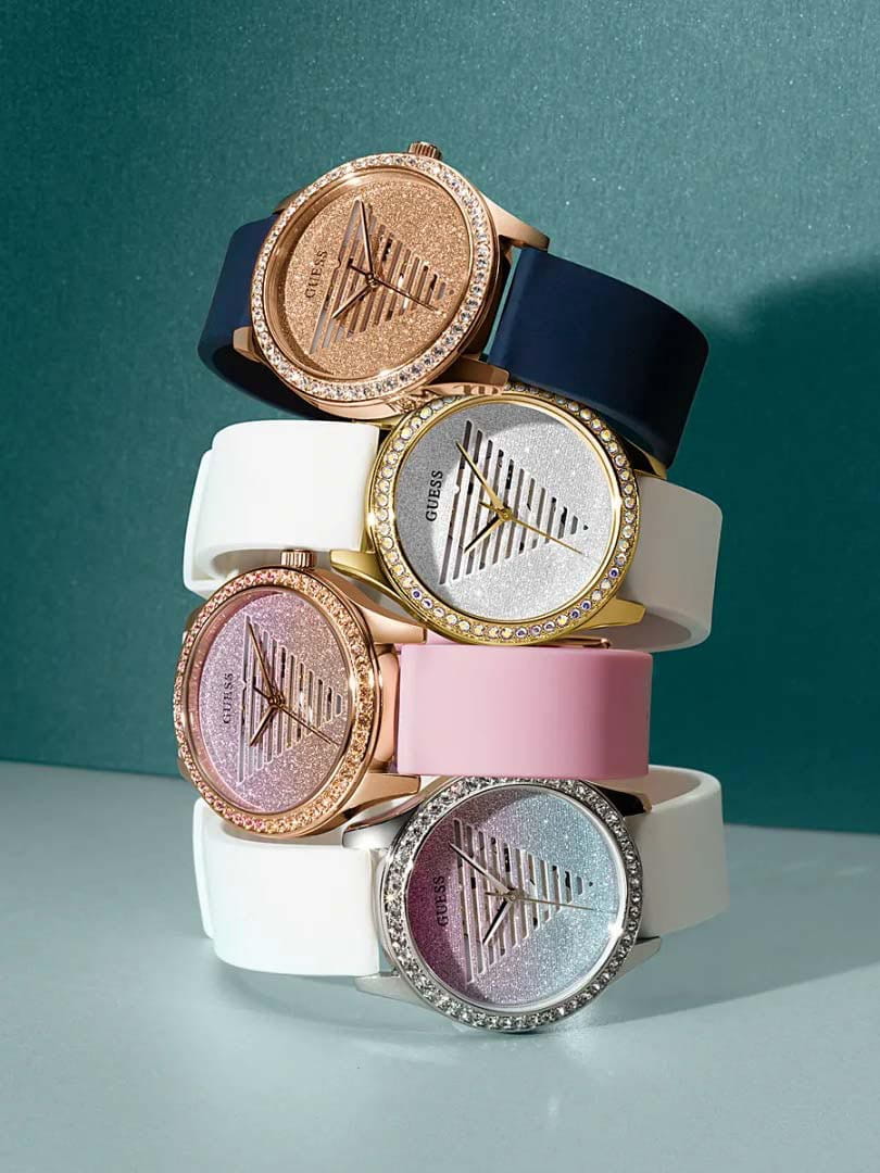 Женские наручные часы с минеральным стекломМинеральное стеклоМинеральное стекло представляет собой искусственно выращенный минерал кварца. Такое стекло отличается особой устойчивостью к повреждениям и царапинам. Уступает по некоторым качествам сапфировому стеклу. Guess Lady Idol GW0530L5, кварцевый механизм с высокой точностью. Класс водозащиты: 30 метров, позволит защитить корпус от случайных брызг или капель дождя. Корпус часов изготовлен из стали. Силиконовый ремешок на стандартной застёжке. Радужный циферблат. Рифленая заводная головка.
