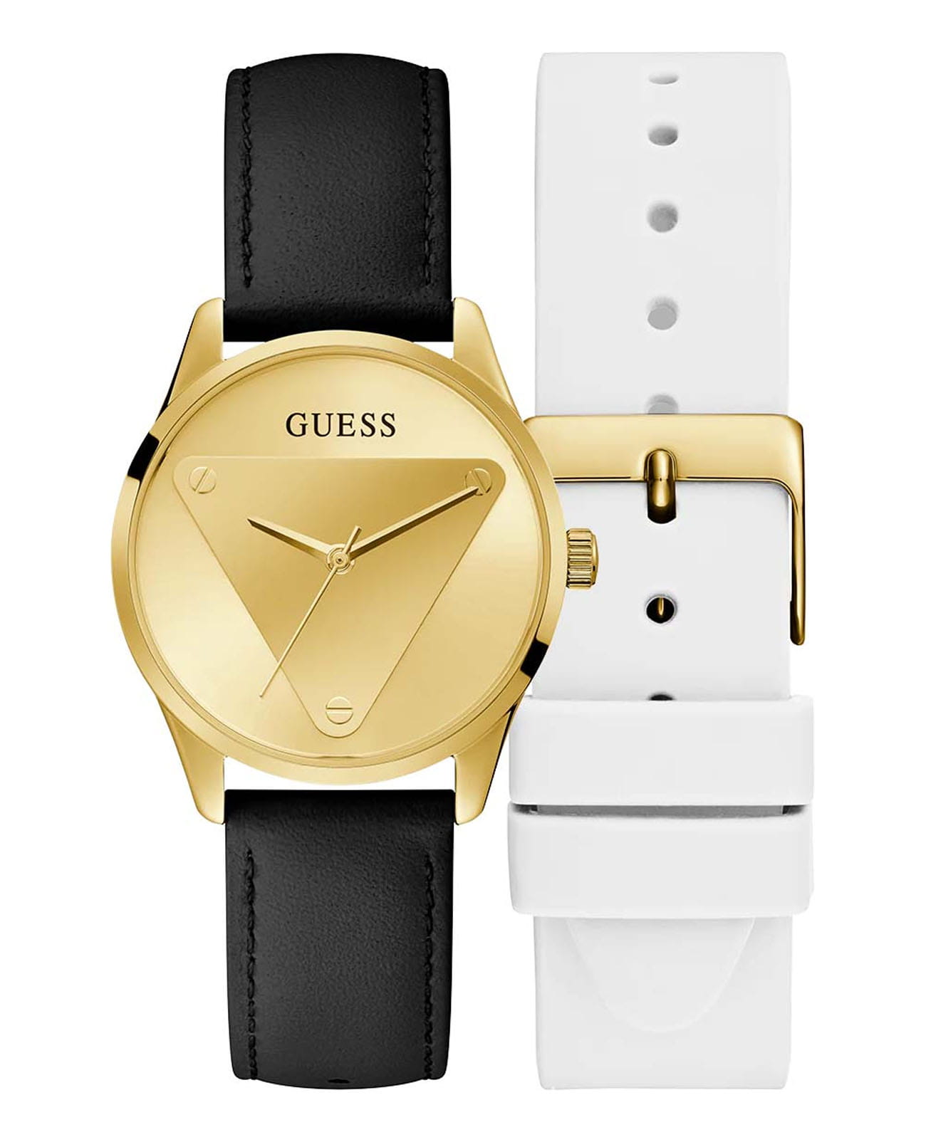 Женские наручные часы Guess Trend GW0642L1 с минеральным стекломМинеральное стеклоМинеральное стекло представляет собой искусственно выращенный минерал кварца. Такое стекло отличается особой устойчивостью к повреждениям и царапинам. Уступает по некоторым качествам сапфировому стеклу., кварцевый механизм с высокой точностью. Корпус часов изготовлен из стали с IP-покрытиемIP-покрытиеМетод ионного напыления. Демонстрирует повышенную устойчивость к истиранию, окислению и химическим веществам. Под воздействием высокого давления и температуры около 1500°C молекулы металла надёжно соединяются с частицами корпуса часов.. Циферблат выполнен по технологии Sunray (солнечные лучи). Класс водозащиты: 30 метров, позволит защитить корпус от случайных брызг или капель дождя. Кожаный ремешок на стандартной застежке. В комплекте белый силиконовый ремешок.