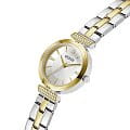 =Женские наручные часы Guess Dress GW0762L5 с минеральным стекломМинеральное стеклоМинеральное стекло представляет собой искусственно выращенный минерал кварца. Такое стекло отличается особой устойчивостью к повреждениям и царапинам. Уступает по некоторым качествам сапфировому стеклу., кварцевый механизм с высокой точностью. Корпус часов изготовлен из стали с частичным IP-покрытиемIP-покрытиеМетод ионного напыления. Демонстрирует повышенную устойчивость к истиранию, окислению и химическим веществам. Под воздействием высокого давления и температуры около 1500°C молекулы металла надёжно соединяются с частицами корпуса часов.. Корпус и циферблат украшены кристаллами. Класс водозащиты: 30 метров, позволит защитить корпус от случайных брызг или капель дождя. Стальной браслет с частичным IP-покрытиемIP-покрытиеМетод ионного напыления. Демонстрирует повышенную устойчивость к истиранию, окислению и химическим веществам. Под воздействием высокого давления и температуры около 1500°C молекулы металла надёжно соединяются с частицами корпуса часов. на раскладной застёжкеРаскладная застёжкаТакой тип застёжки используется только на браслетах из металла. Она никогда не раскрывается полностью, происходит разделение на 2 и более частей. Раскладывающая застёжка снизит вероятность потери часов к минимуму..