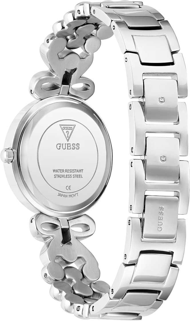 Часы Guess GW0838L1 — это уникальный аксессуар, который подчеркнет вашу индивидуальность и стиль, прекрасно дополняя как повседневный, так и вечерний образ. Эти женские часы оснащены надежным кварцевым механизмом, который гарантирует точность и долговечность. Круглый стальной корпус с полированной поверхностью, диаметром 30 мм и толщиной 8 мм, придает часам изысканный и современный вид. БезельБезельВнешний ободок, закрепляющий стекло. В спортивных часах так называется поворотное кольцо с делениями на циферблате, выполняет роль таймера – замеряет отрезки времени на шкале. Неподвижный безель – элемент декора. Однонаправленно вращающийся безель на дайверских часах позволяет фиксировать моменты погружения и выныривания на поверхность. инкрустирован кристаллами, что добавляет модели роскошь и блеск. Серебристый циферблат, выполненный по технологии Sunray, украшен гильошированием в зоне меток и инкрустирован кристаллами, что создает эффект солнечных лучей. Метки в виде точек с кристаллами подчеркивают утонченность дизайна. Часы оснащены рифленой заводной головкой для удобного управления. Оригинальный стальной браслет с ювелирной застежкой украшенный кристаллами, обеспечивает комфортное ношение и надежную фиксацию на запястье. Водозащита 30WR позволяет часам выдерживать случайные брызги, а минеральное стеклоМинеральное стеклоМинеральное стекло представляет собой искусственно выращенный минерал кварца. Такое стекло отличается особой устойчивостью к повреждениям и царапинам. Уступает по некоторым качествам сапфировому стеклу. защищает циферблат от царапин. Эти часы станут стильным и оригинальным дополнением для любого случая, подчеркивая вашу элегантность и современный стиль.