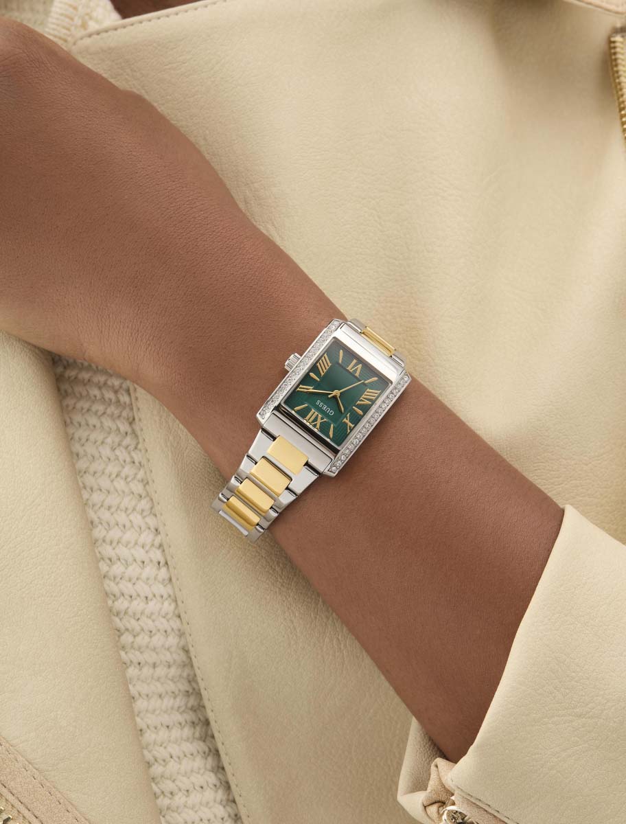 Изысканные женские наручные часы Guess GW0874L2, которые воплощают в себе элегантность и современный стиль. Эти часы оснащены надежным кварцевым механизмом, что обеспечивает их точность и долговечность. Корпус, выполненный из высококачественной стали, имеет прямоугольную форму и украшен роскошными кристаллами, придающими изделию особый блеск и шик. Зеленый циферблат с эффектом солнечных лучей выглядит поистине утонченно, а часовые метки в виде штрихов и римских цифр добавляют классическую нотку в общий дизайн. Рифленая заводная головка не только удобна в использовании, но и гармонично вписывается в общий облик часов. Стальной браслет с IP-покрытиемIP-покрытиеМетод ионного напыления. Демонстрирует повышенную устойчивость к истиранию, окислению и химическим веществам. Под воздействием высокого давления и температуры около 1500°C молекулы металла надёжно соединяются с частицами корпуса часов. и с раскладной застежкойРаскладная застёжкаТакой тип застёжки используется только на браслетах из металла. Она никогда не раскрывается полностью, происходит разделение на 2 и более частей. Раскладывающая застёжка снизит вероятность потери часов к минимуму. обеспечивает надежную фиксацию на запястье и комфорт при носке. Часы обладают водозащитой 30WR, что обеспечивает им защиту от брызг и дождя, а минеральное стеклоМинеральное стеклоМинеральное стекло представляет собой искусственно выращенный минерал кварца. Такое стекло отличается особой устойчивостью к повреждениям и царапинам. Уступает по некоторым качествам сапфировому стеклу. предохраняет циферблат от царапин и повреждений. Эти часы станут прекрасным дополнением к вашему образу, подчеркивая вашу индивидуальность и стиль.