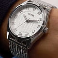Мужские наручные часы Guess GW0895G1 идеально подходят для тех, кто ценит элегантность и надежность. Часы оснащены кварцевым механизмом, обеспечивающим высокую точность и стабильность хода. Круглый корпус из стали придает изделию современный и утонченный вид, делая его универсальным аксессуаром для любого случая. Циферблат выполнен в серебристом цвете с гильоше-узором, создающим изысканный эффект и добавляющим глубины дизайну. Метки в виде арабских цифр позволяют легко и быстро определять время. Стрелки с люминесцентным покрытиемЛюминесцентное покрытиеПозволяет считывать показания времени в темноте. Производители наносят на стрелки, часовые индексы, безель или поверхность циферблата светонакопительный состав, дающий холодное свечение. обеспечивают отличную видимость в условиях низкой освещенности, что делает часы практичными и удобными в использовании. Рифленая заводная головка снабжена защитой, что подчеркивает внимание к деталям и обеспечивает дополнительную надежность. Стальной браслет с раскладной застежкойРаскладная застёжкаТакой тип застёжки используется только на браслетах из металла. Она никогда не раскрывается полностью, происходит разделение на 2 и более частей. Раскладывающая застёжка снизит вероятность потери часов к минимуму. гарантирует комфортное ношение и надежную фиксацию на запястье. Водозащита 30WR защищает механизм от случайных брызг и дождя, а минеральное стеклоМинеральное стеклоМинеральное стекло представляет собой искусственно выращенный минерал кварца. Такое стекло отличается особой устойчивостью к повреждениям и царапинам. Уступает по некоторым качествам сапфировому стеклу. предотвращает появление царапин на циферблате. Эти часы станут отличным дополнением к гардеробу для тех, кто ценит качество, стиль и функциональность в одном аксессуаре.