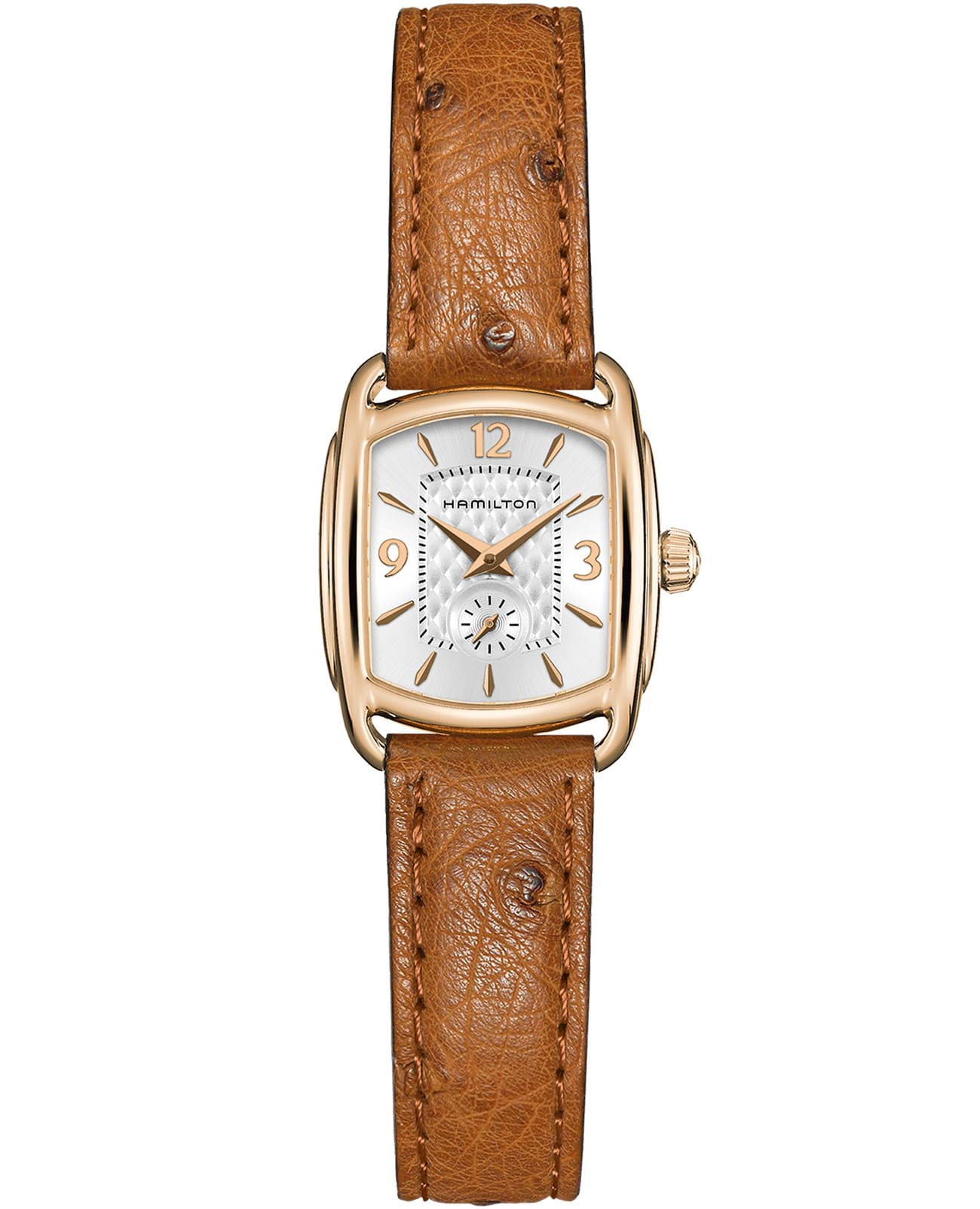 Женские наручные часы Hamilton American Classics Lady H12341555. Корпус часов изготовлен из нержавеющей стали с PVD-покрытиемPVDУльтратонкое покрытие наносится в технике вакуумного напыления, сочетает в себе нитрид титана особой прочности со слоем золота или оксида хрома. Несёт в себе декоративную или защитную функцию.. Сапфировое стеклоСапфировое стеклоПрочный и надёжный материал из кристалла сапфира синтетического происхождения, характеризующийся особой твёрдостью и устойчивостью к царапинам и повреждениям. с антибликовым покрытием. Кожаный ремешок на стандартной застёжке. Уровень влагозащиты: 50 метров, позволит защитить корпус от случайных брызг или капель дождя.