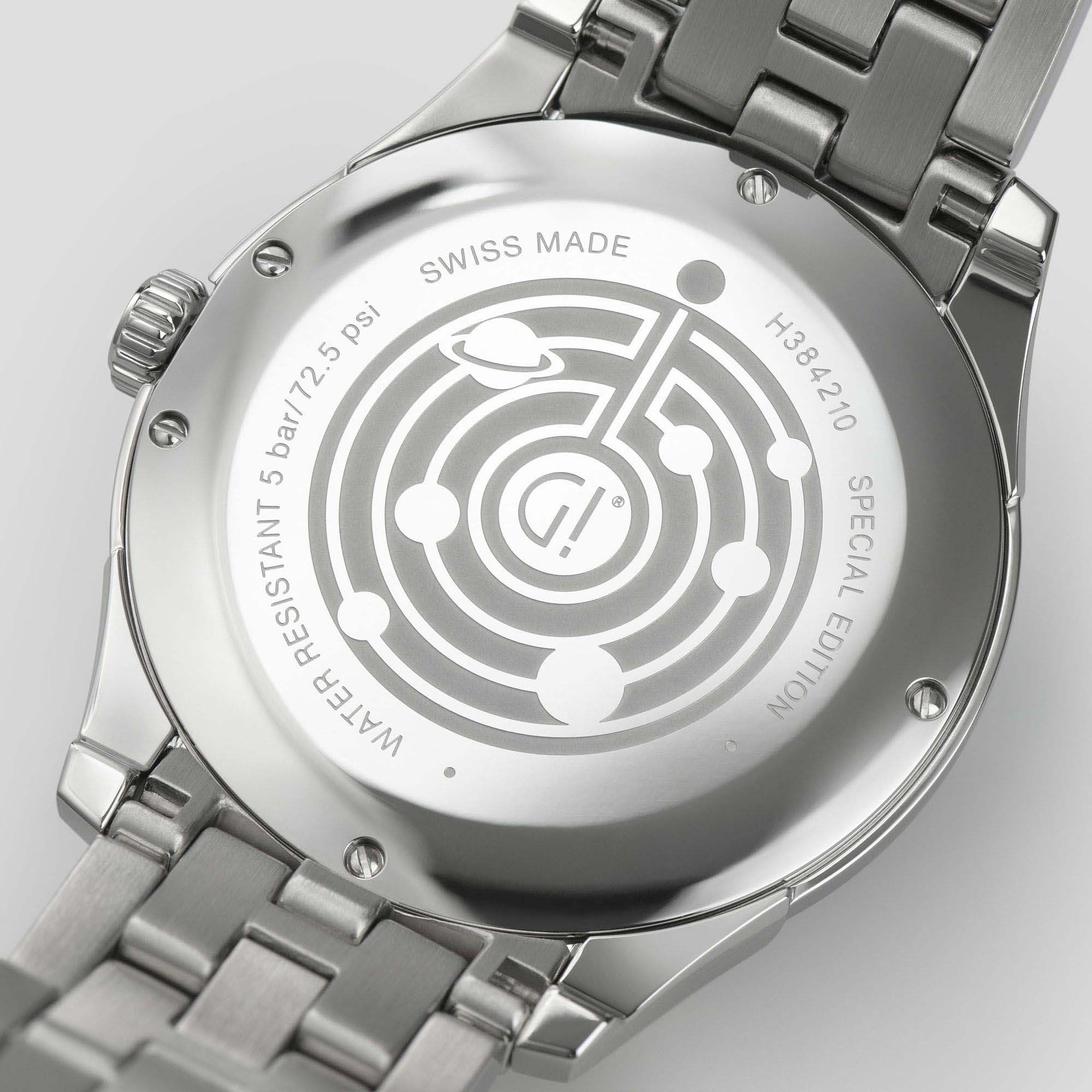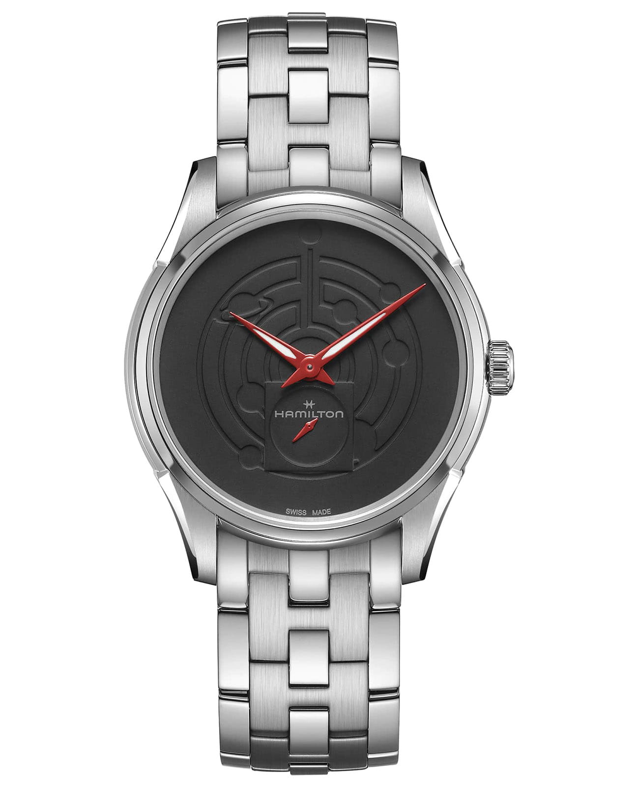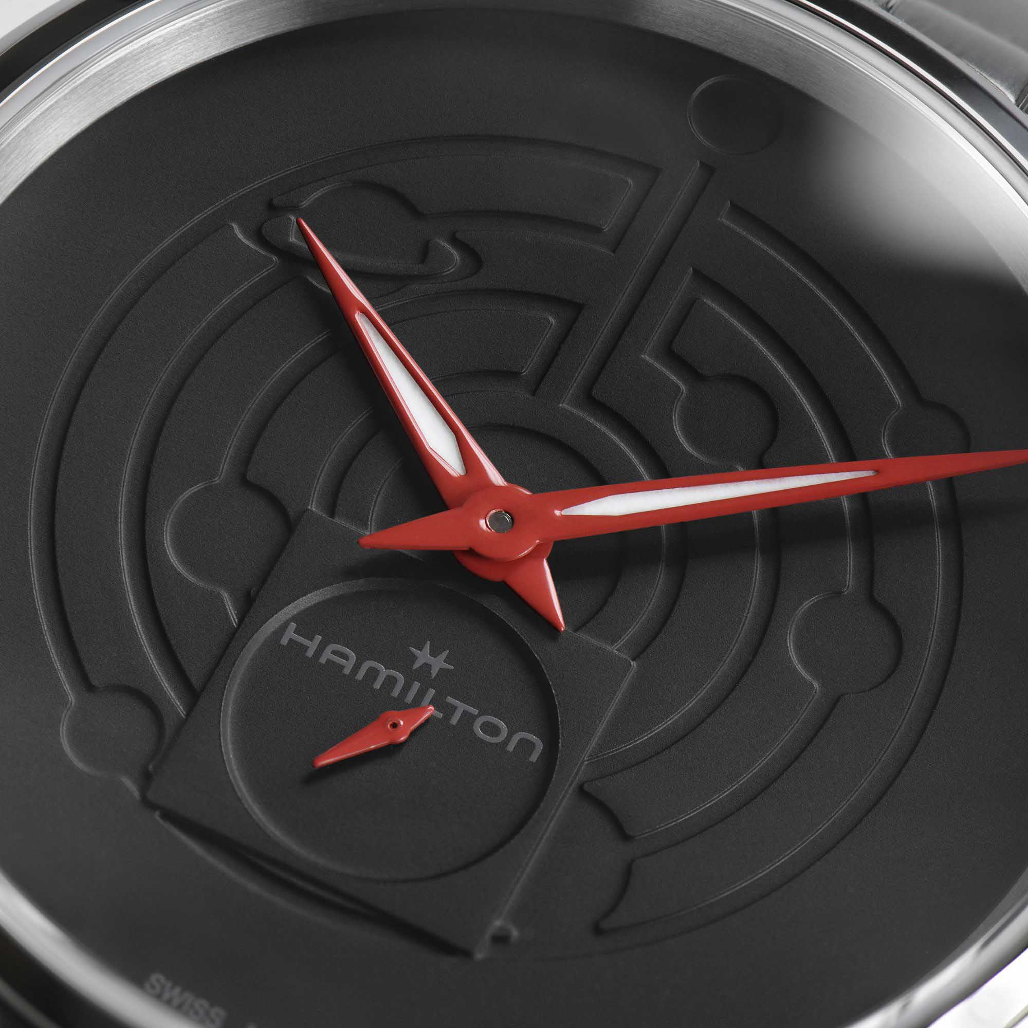 Откройте для себя новые космические горизонты: источником вдохновения для создания модели Jazzmaster Thinline Special Edition послужил фильм «Блуждающая Земля 2» – продолжение китайской научно-фантастической картины режиссера Франта Гво, основанной на романе Лю Цысиня 2000 года. Часы этой специальной серии, заключенные в обтекаемый корпус диаметром 40 мм, имеют черный циферблат с контрастными красными часовой, минутной и малой секундной стрелками. Циферблат привлекает внимание планетарным дизайном – аллюзия на тему исследования космоса, освещенную в фильме. Прочное сапфировое стеклоСапфировое стеклоПрочный и надёжный материал из кристалла сапфира синтетического происхождения, характеризующийся особой твёрдостью и устойчивостью к царапинам и повреждениям.. Браслет из нержавеющей стали с застёжкой «бабочка» с кнопкамиЗастёжка "бабочка"Такой вид застёжки дополняется предохранителями, помогающими избежать случайного раскрытия браслета. Обладают изящным исполнением. .