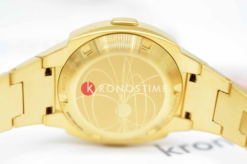 Hamilton PSR 74 H52314130 — стильная цифровая модель в ретрофутуристическом дизайне с акцентом на легендарное наследие Pulsar. Корпус размерами 26 × 31 мм выполнен из нержавеющей стали с PVD-покрытиемPVDУльтратонкое покрытие наносится в технике вакуумного напыления, сочетает в себе нитрид титана особой прочности со слоем золота или оксида хрома. Несёт в себе декоративную или защитную функцию. жёлтого золота, придающим часам винтажное звучание и элегантность. Гибридный дисплей сочетает постоянную LCD-индикацию и активируемую по нажатию LED-подсветку с характерными красными цифрами. Циферблат защищён сапфировым стекломСапфировое стеклоПрочный и надёжный материал из кристалла сапфира синтетического происхождения, характеризующийся особой твёрдостью и устойчивостью к царапинам и повреждениям. с антибликовым покрытиемАнтибликовое покрытиеСлой оксида металла в 0,13-0,3 микрон, благодаря которому стекло часов не бликует и не отражает свет. Антибликовое покрытие уменьшает отражение света в 10 раз, обеспечивая отличную читаемость показателей циферблата.. Внутри установлен точный кварцевый механизм с четырёхлетним сроком службы батареи. Формат времени можно выбрать — 12 или 24 часа, также отображается дата. Браслет выполнен из стали с PVD-покрытиемPVDУльтратонкое покрытие наносится в технике вакуумного напыления, сочетает в себе нитрид титана особой прочности со слоем золота или оксида хрома. Несёт в себе декоративную или защитную функцию. в тон корпуса, а застёжка 'бабочка'Застёжка "бабочка"Такой вид застёжки дополняется предохранителями, помогающими избежать случайного раскрытия браслета. Обладают изящным исполнением. обеспечивает комфортную посадку и надёжную фиксацию. Водонепроницаемость 100 метров делает модель подходящей для активного повседневного использования. Hamilton PSR 74 — культовая классика с цифровой душой.