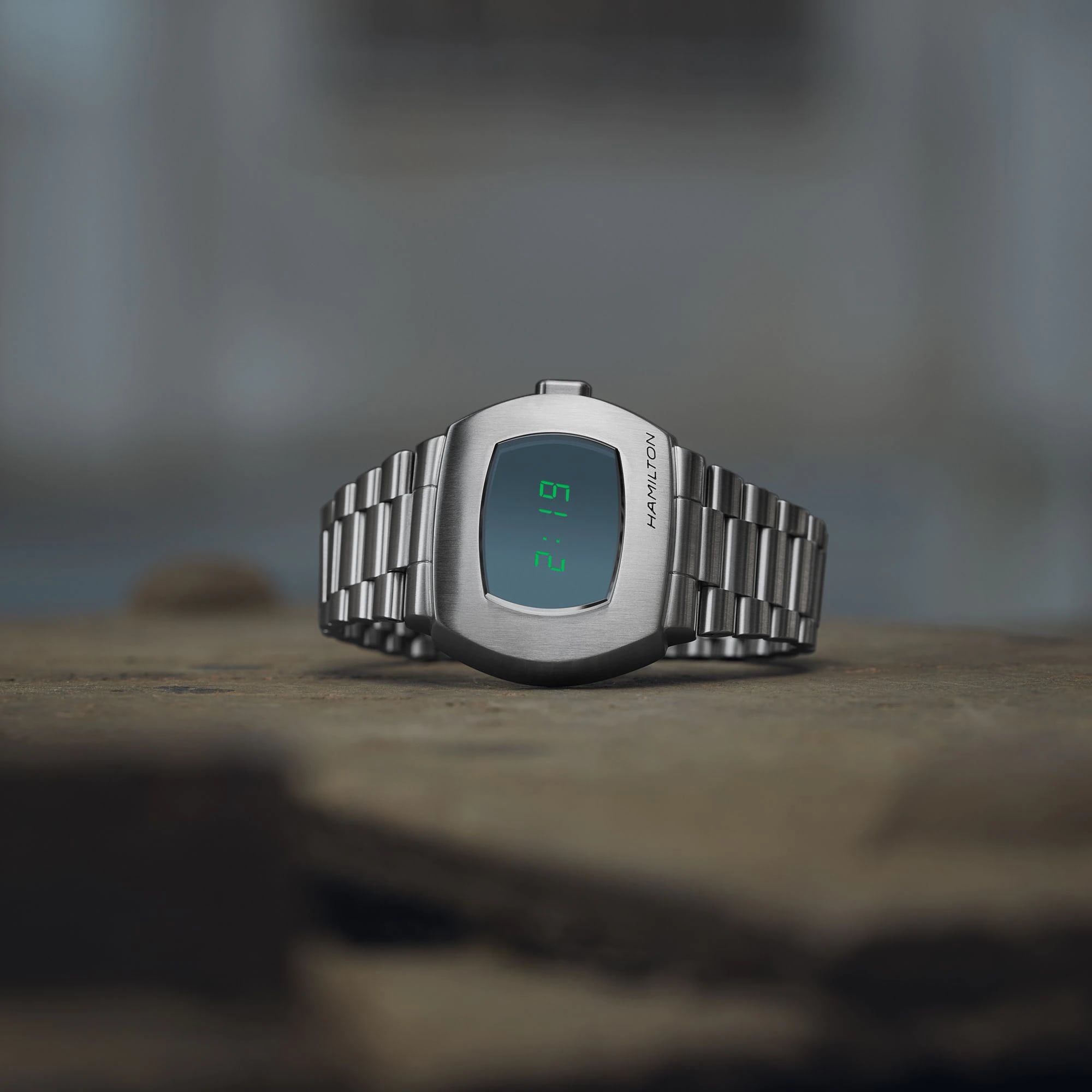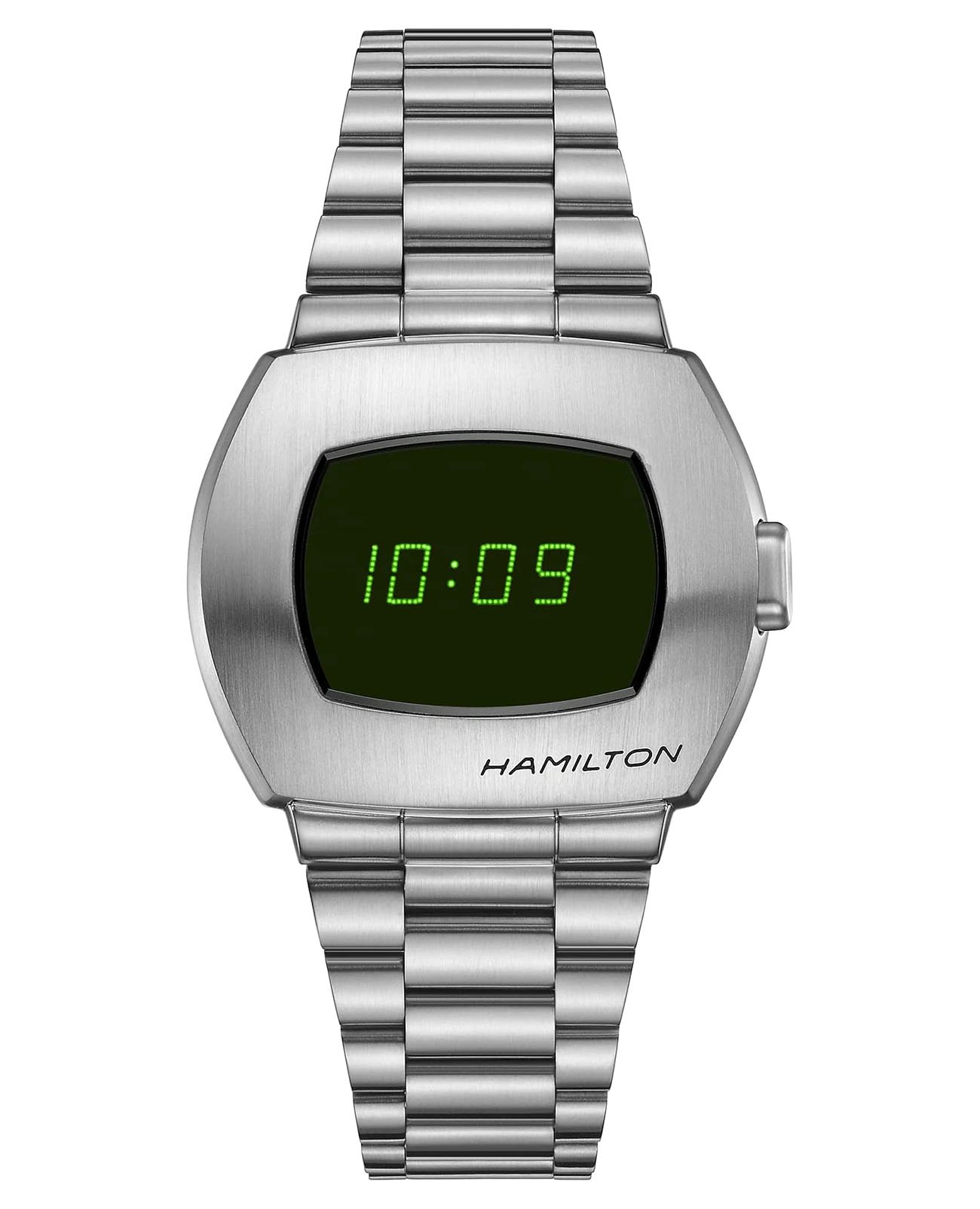 Мужские швейцарские часы из лимитированной серии в количестве 1970 штук Hamilton American Classic PSR Digital Quartz H52414131, кварцевый механизм с высокой точностью. Сапфировое стеклоСапфировое стеклоПрочный и надёжный материал из кристалла сапфира синтетического происхождения, характеризующийся особой твёрдостью и устойчивостью к царапинам и повреждениям. устойчивое к появлению царапин, обладающее высокой прозрачностью. Класс водозащиты: 100 метров, позволит плавать, нырять и заниматься другими водными видами спорта. Корпус часов изготовлен из стали. Стальной браслет на застёжке-бабочке с кнопкамиЗастёжка "бабочка"Такой вид застёжки дополняется предохранителями, помогающими избежать случайного раскрытия браслета. Обладают изящным исполнением. .