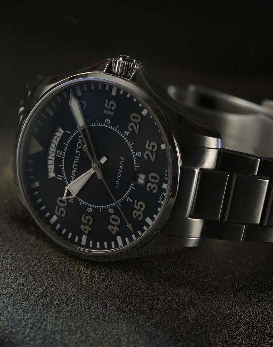 Невозможно воссоздать то, что испытывал летчик-первооткрыватель на рубеже двадцатого века, находясь в кабине летательного аппарата. Модели Hamilton позволяет получить об этом представление благодаря использованию таких современных материалов, как нержавеющая сталь и сапфировое стекло. Автоматический механизм и наделенный совершенными пропорциями корпус диаметром 42 мм придают винтажным часам особую актуальность. Представлены в фильме «Интерстеллар» (2014) на Мэттью Макконахи в роли Купера.