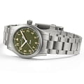 Hamilton Khaki Field Quartz H69301160 — компактные и универсальные часы в классическом военном стиле, с акцентом на надёжность и практичность. Корпус диаметром 33 мм выполнен из нержавеющей стали с сатинированной поверхностью. Он лёгкий, удобный и идеально подходит для запястий любого размера. Циферблат защищён сапфировым стекломСапфировое стеклоПрочный и надёжный материал из кристалла сапфира синтетического происхождения, характеризующийся особой твёрдостью и устойчивостью к царапинам и повреждениям. с антибликовым покрытиемАнтибликовое покрытиеСлой оксида металла в 0,13-0,3 микрон, благодаря которому стекло часов не бликует и не отражает свет. Антибликовое покрытие уменьшает отражение света в 10 раз, обеспечивая отличную читаемость показателей циферблата., устойчивым к царапинам и бликам. Циферблат оформлен в классическом армейском стиле: крупные арабские цифры, 24-часовая шкала по внутреннему кругу, стрелки и метки с люминесцентным покрытиемЛюминесцентное покрытиеПозволяет считывать показания времени в темноте. Производители наносят на стрелки, часовые индексы, безель или поверхность циферблата светонакопительный состав, дающий холодное свечение. для удобного считывания в темноте. Внутри установлен швейцарский кварцевый калибр ETA F05.105mh2 с функцией EOL-индикацииEOLПредставляет собой систему, уведомляющую владельца часов о необходимости замены элемента питания. За 2 недели до полного разряда батарейки секундная стрелка перестаёт ходить чётко и начинает перепрыгивать на 3-4 деления. — предупреждением о скором разряде батареи. Модель укомплектована браслетом из нержавеющей стали с раскладной застёжкойРаскладная застёжкаТакой тип застёжки используется только на браслетах из металла. Она никогда не раскрывается полностью, происходит разделение на 2 и более частей. Раскладывающая застёжка снизит вероятность потери часов к минимуму., обеспечивающей надёжную посадку. Водонепроницаемость 50 метров делает часы устойчивыми к брызгам и дождю, идеально подходящими для повседневного ношения. Khaki Field Quartz 33 мм — надёжный выбор для тех, кто ценит простоту, точность и долговечность.
