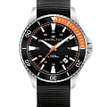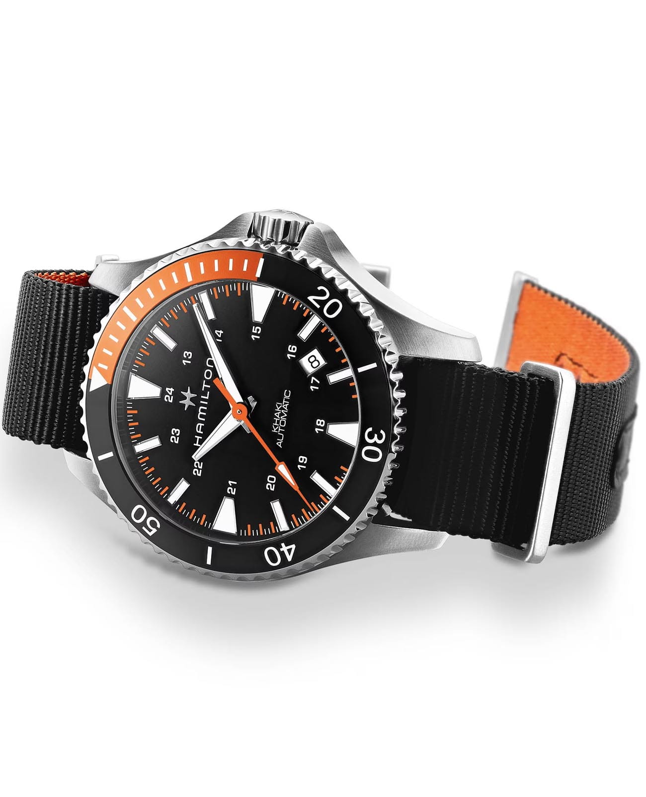 Мужские часы Hamilton Khaki Navy Scuba Auto H82305931 с автоматическим механизмом. Корпус часов выполнен из нержавеющей стали. БезельБезельВнешний ободок, закрепляющий стекло. В спортивных часах так называется поворотное кольцо с делениями на циферблате, выполняет роль таймера – замеряет отрезки времени на шкале. Неподвижный безель – элемент декора. Однонаправленно вращающийся безель на дайверских часах позволяет фиксировать моменты погружения и выныривания на поверхность. с PVD-покрытиемPVDУльтратонкое покрытие наносится в технике вакуумного напыления, сочетает в себе нитрид титана особой прочности со слоем золота или оксида хрома. Несёт в себе декоративную или защитную функцию.. Тканевый ремешок на стандартной застёжке. Стрелки и метки с люминесцентным покрытиемЛюминесцентное покрытиеПозволяет считывать показания времени в темноте. Производители наносят на стрелки, часовые индексы, безель или поверхность циферблата светонакопительный состав, дающий холодное свечение.. Окошко даты находится в положении между 4 и 5 часов. Сапфировое стеклоСапфировое стеклоПрочный и надёжный материал из кристалла сапфира синтетического происхождения, характеризующийся особой твёрдостью и устойчивостью к царапинам и повреждениям. с антибликовым покрытием. Уровень влагозащиты: 100 метров, позволит плавать, нырять и заниматься другими водными видами спорта.
