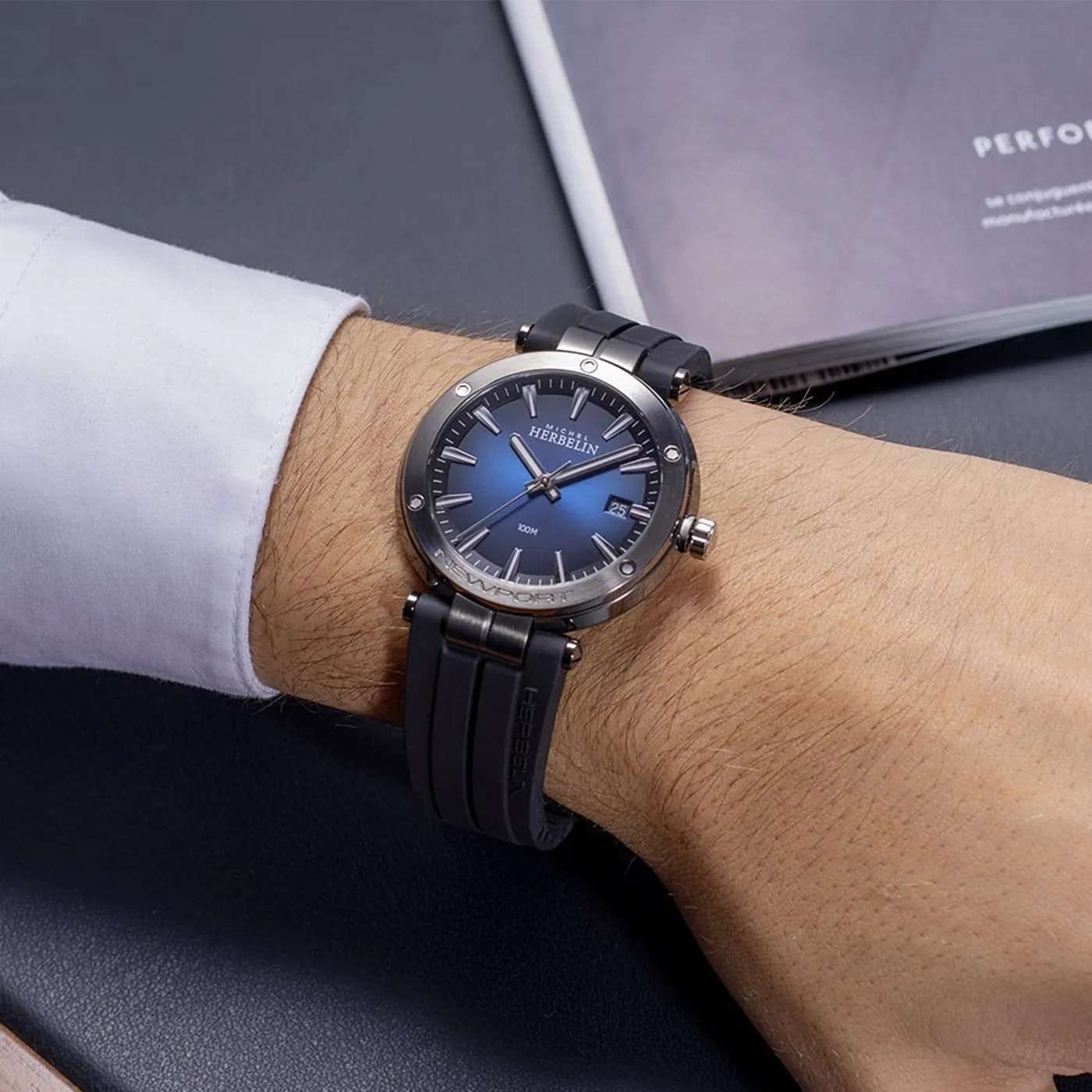 Мужские кварцевые часы Herbelin Newport 12288G15CA – отражающий идеальное сочетание современного дизайна, надёжности и функциональности. Элегантный облик станет превосходным завершением образа, наделив его индивидуальным характером. Корпус из нержавеющей стали с PVD-покрытиемPVDУльтратонкое покрытие наносится в технике вакуумного напыления, сочетает в себе нитрид титана особой прочности со слоем золота или оксида хрома. Несёт в себе декоративную или защитную функцию. черного цвета, диаметром 40.5 мм, идеально сбалансирован и элегантен. Сапфировое стеклоСапфировое стеклоПрочный и надёжный материал из кристалла сапфира синтетического происхождения, характеризующийся особой твёрдостью и устойчивостью к царапинам и повреждениям. защищает циферблат от царапин и устойчивое к механическим повреждениям. БезельБезельВнешний ободок, закрепляющий стекло. В спортивных часах так называется поворотное кольцо с делениями на циферблате, выполняет роль таймера – замеряет отрезки времени на шкале. Неподвижный безель – элемент декора. Однонаправленно вращающийся безель на дайверских часах позволяет фиксировать моменты погружения и выныривания на поверхность. украшен винтами, заводная головка с защитой. Окошко даты находится в положении 3 часа. Стрелки и метки с люминесцентным покрытиемЛюминесцентное покрытиеПозволяет считывать показания времени в темноте. Производители наносят на стрелки, часовые индексы, безель или поверхность циферблата светонакопительный состав, дающий холодное свечение.. Каучуковый ремешок на застёжке-бабочке с кнопкамиЗастёжка "бабочка"Такой вид застёжки дополняется предохранителями, помогающими избежать случайного раскрытия браслета. Обладают изящным исполнением. обеспечивает комфортное ношение. Водозащита 100 метров позволит плавать, нырять и заниматься другими водными видами спорта. Эта модель – отличный выбор для тех, кто ищет сочетание стиля, качества и функциональности. Часы станут не только полезным аксессуаром, но и выразительным элементом вашего имиджа.