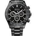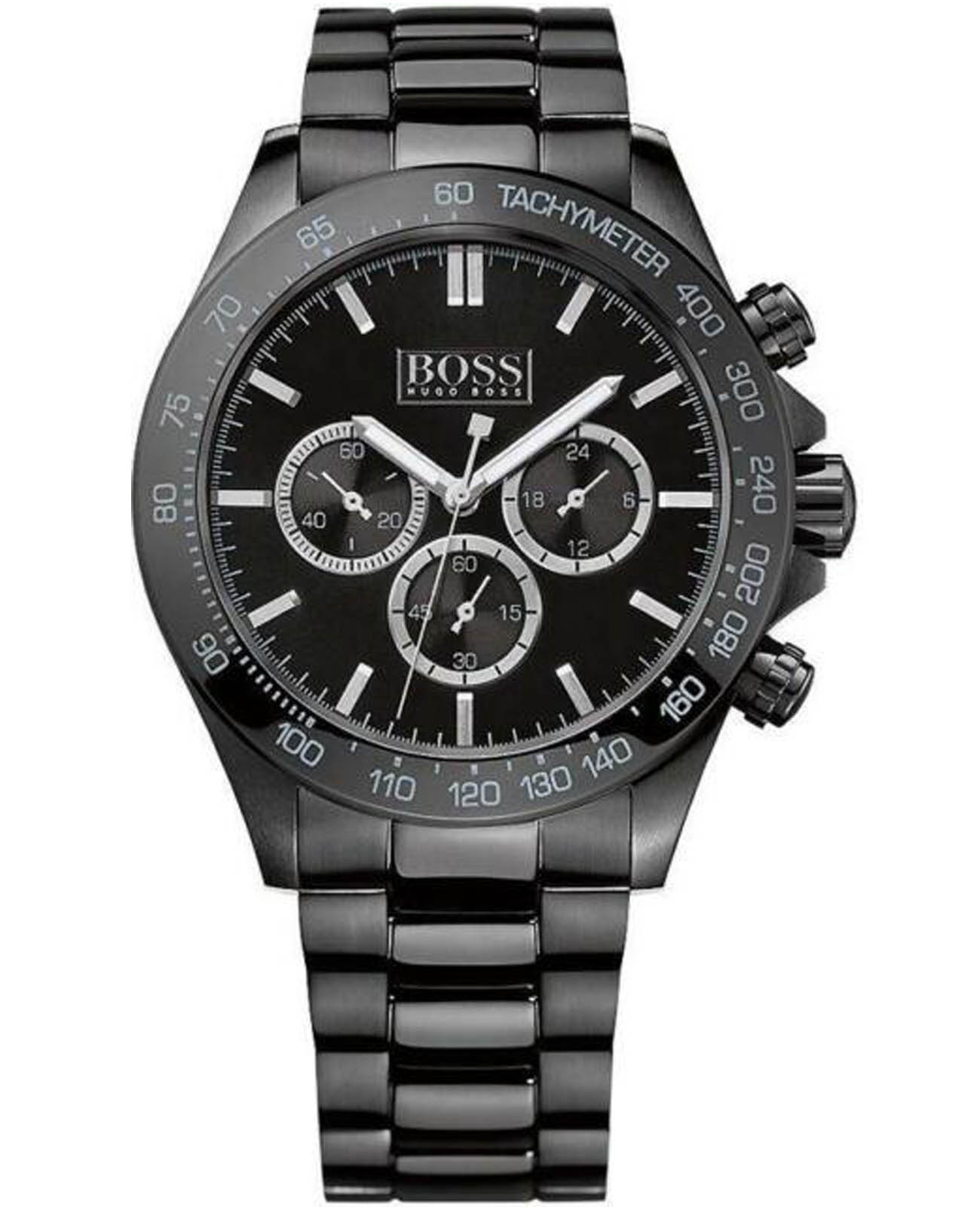 Мужские часы Hugo Boss Ikon HB1512961 сочетают спортивный стиль с элегантностью в матовом черном корпусе из нержавеющей стали с IP-покрытиемIP-покрытиеМетод ионного напыления. Демонстрирует повышенную устойчивость к истиранию, окислению и химическим веществам. Под воздействием высокого давления и температуры около 1500°C молекулы металла надёжно соединяются с частицами корпуса часов. диаметром 44 мм. Модель оснащена кварцевым механизмом с функцией хронографаХронографФункция позволяет измерять отрезки времени с особой точностью: часы, минуты, секунды. Верным признаком хронографа является наличие на циферблате 3 дополнительных окошек-счётчиков. и тахиметрической шкалойТахиметрРазмеченная шкала, располагается на ободке или безеле часов. Тахиметр позволяет рассчитать скорость на определённом участке пути, расстояние измеряется в километрах или милях. на безелеБезельВнешний ободок, закрепляющий стекло. В спортивных часах так называется поворотное кольцо с делениями на циферблате, выполняет роль таймера – замеряет отрезки времени на шкале. Неподвижный безель – элемент декора. Однонаправленно вращающийся безель на дайверских часах позволяет фиксировать моменты погружения и выныривания на поверхность.. Черный циферблат с рельефными метками и 24-часовой шкалой защищен прочным минеральным стекломМинеральное стеклоМинеральное стекло представляет собой искусственно выращенный минерал кварца. Такое стекло отличается особой устойчивостью к повреждениям и царапинам. Уступает по некоторым качествам сапфировому стеклу., устойчивым к царапинам. Стальной браслет с черным покрытием обеспечивает удобную посадку, а ударопрочная конструкцияУдаропрочный корпусМеханизм заключён в корпус, выполненный из современных материалов, устойчивых к ударам, механическим повреждениям и падению с высоты: инновационный пластик, карбон, нержавеющая сталь, титан. с делает часы надежным спутником в повседневной жизни