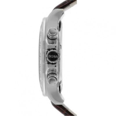 Мужские часы Hugo Boss Ikon HB1513175 представлены в строгом круглом корпусе из нержавеющей стали диаметром 44 мм, защищенным прочным минеральным стекломМинеральное стеклоМинеральное стекло представляет собой искусственно выращенный минерал кварца. Такое стекло отличается особой устойчивостью к повреждениям и царапинам. Уступает по некоторым качествам сапфировому стеклу.. Модель оснащена точным кварцевым механизмом c калибром Seiko с функцией хронографаХронографФункция позволяет измерять отрезки времени с особой точностью: часы, минуты, секунды. Верным признаком хронографа является наличие на циферблате 3 дополнительных окошек-счётчиков. и 24-часовым индикатором. Белый эффектный циферблат с контрастными серебристыми метками и стрелками с люминесцентным покрытиемЛюминесцентное покрытиеПозволяет считывать показания времени в темноте. Производители наносят на стрелки, часовые индексы, безель или поверхность циферблата светонакопительный состав, дающий холодное свечение., обеспечивающий отличную видимость в темноте. Эти изысканные часы также оснащены тахиметромТахиметрРазмеченная шкала, располагается на ободке или безеле часов. Тахиметр позволяет рассчитать скорость на определённом участке пути, расстояние измеряется в километрах или милях.. Кожаный ремень со стандартной застежкой обеспечивает комфортную посадку, а водонепроницаемость 100 метров делает модель надежной для повседневной носки.
