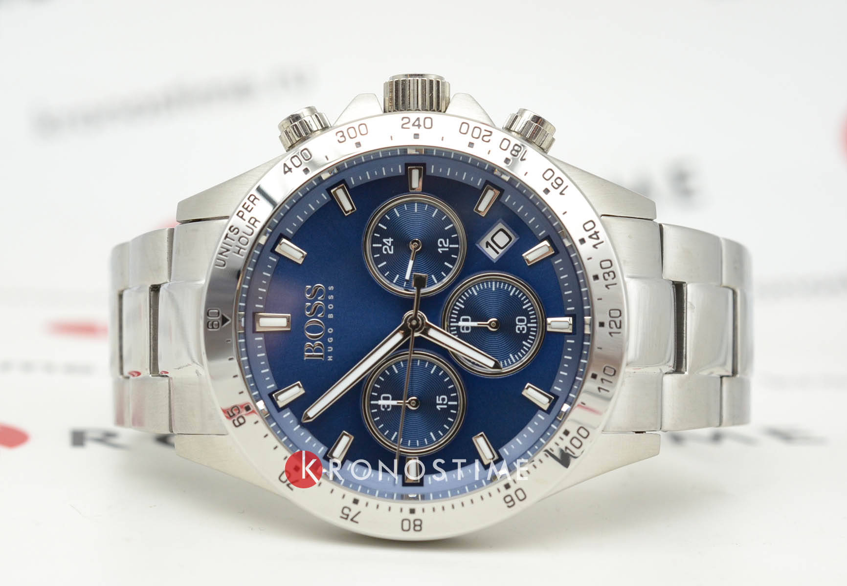 Мужские кварцевые часы Hugo Boss Hero HB1513755 представляют собой стильный хронографХронографФункция позволяет измерять отрезки времени с особой точностью: часы, минуты, секунды. Верным признаком хронографа является наличие на циферблате 3 дополнительных окошек-счётчиков. с круглым корпусом диаметром 43 мм из нержавеющей стали, дополненным синим циферблатом с серебристыми стрелками и штриховыми индексами для оптимальной читаемости. Модель оснащена высокоточным кварцевым механизмом с функцией хронографаХронографФункция позволяет измерять отрезки времени с особой точностью: часы, минуты, секунды. Верным признаком хронографа является наличие на циферблате 3 дополнительных окошек-счётчиков., включая 60-минутный счетчик и индикацию даты. Циферблат защищен устойчивым к царапинам минеральным стекломМинеральное стеклоМинеральное стекло представляет собой искусственно выращенный минерал кварца. Такое стекло отличается особой устойчивостью к повреждениям и царапинам. Уступает по некоторым качествам сапфировому стеклу., а водонепроницаемость 5 ATM (50 метров) обеспечивает защиту от брызг и дождя. Стальной браслет с раскладной застежкойРаскладная застёжкаТакой тип застёжки используется только на браслетах из металла. Она никогда не раскрывается полностью, происходит разделение на 2 и более частей. Раскладывающая застёжка снизит вероятность потери часов к минимуму. обеспечивает надежную посадку на запястье, а тахиметрическая шкалаТахиметрРазмеченная шкала, располагается на ободке или безеле часов. Тахиметр позволяет рассчитать скорость на определённом участке пути, расстояние измеряется в километрах или милях. на безеле позволяет производить расчеты скорости. Точность хода составляет ±15 секунд в месяц, что соответствует стандартам кварцевых механизмов. Дизайн модели сочетает спортивную функциональность с элегантным стилем, характерным для коллекции Hero.