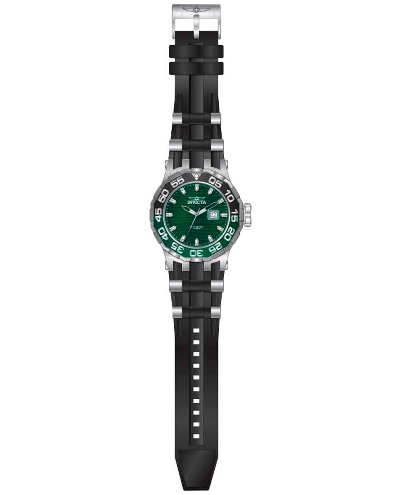 Мужские наручные часы Invicta Specialty IN38694 сочетают в себе спортивный дизайн и высокую функциональность, что делает их отличным выбором для активных мужчин . Модель обладает круглым корпусом, выполненным из нержавеющей стали и алюминиевой вставкой, что обеспечивает устойчивость к внешним воздействиям и стильный внешний вид . БезельБезельВнешний ободок, закрепляющий стекло. В спортивных часах так называется поворотное кольцо с делениями на циферблате, выполняет роль таймера – замеряет отрезки времени на шкале. Неподвижный безель – элемент декора. Однонаправленно вращающийся безель на дайверских часах позволяет фиксировать моменты погружения и выныривания на поверхность. с IP-покрытиемIP-покрытиеМетод ионного напыления. Демонстрирует повышенную устойчивость к истиранию, окислению и химическим веществам. Под воздействием высокого давления и температуры около 1500°C молекулы металла надёжно соединяются с частицами корпуса часов.. Циферблат зеленого цвета дополнен метками в виде штрихов и светящимися стрелками с люминесцентным покрытиемЛюминесцентное покрытиеПозволяет считывать показания времени в темноте. Производители наносят на стрелки, часовые индексы, безель или поверхность циферблата светонакопительный состав, дающий холодное свечение. Tritnite, гарантирующими отличную видимость даже в темное время суток . Ремешок часов выполнен из силикона черного цвета со стальными вставками, который обеспечивает комфорт при длительной носке. Фиксация осуществляется с помощью классической застежки . Для защиты циферблата используется минеральное стеклоМинеральное стеклоМинеральное стекло представляет собой искусственно выращенный минерал кварца. Такое стекло отличается особой устойчивостью к повреждениям и царапинам. Уступает по некоторым качествам сапфировому стеклу., оснащенное антибликовым покрытием, что делает его устойчивым к царапинам и бликам . Часы оснащены кварцевым механизмом, обеспечивающим высокую точность хода без необходимости подзаводки. Водонепроницаемость модели достигает 500 метров (50 атмосфер), что позволяет использовать их во время плавания, дайвинга и других водных видов спорта . Корпус часов также оборудован винтовой коронкой для дополнительной защиты механизма от попадания воды . Сочетание практичности, надежности и стильного дизайна делает эту модель универсальным аксессуаром как для повседневной носки, так и для занятий спортом.