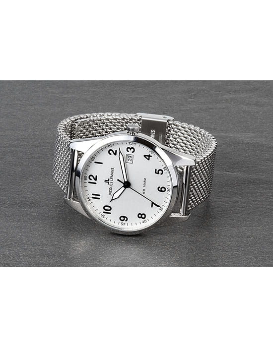 Наручные часы Jacques Lemans призваны ставить на первое место индивидуальный стиль владельца, классическая элегантность придётся по вкусу каждому. Брендовые часы привлекают минималистичным дизайном, отсутствие вычурности и обилия декорирующих элементов делают модель лучшим решением для ежедневного применения. Аксессуар можно носить с деловыми костюмами и повседневной одеждой, он органично сочетается как с классическими брюками, так и с рваными джинсами. Это настоящее часовое искусство высокого качества, часы считаются актуальным вариантом на все времена и с идеальной точностью показывают время благодаря надёжному японскому механизму.