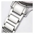 Женские часы-хронографХронографФункция позволяет измерять отрезки времени с особой точностью: часы, минуты, секунды. Верным признаком хронографа является наличие на циферблате 3 дополнительных окошек-счётчиков. c секундомеромСекундомерСекундоме́р — прибор, способный измерять интервалы времени с точностью до долей секунды. Jacques Lemans Venice 1-2151L, кварцевый механизм с высокой точностью. Минеральное стеклоМинеральное стеклоМинеральное стекло представляет собой искусственно выращенный минерал кварца. Такое стекло отличается особой устойчивостью к повреждениям и царапинам. Уступает по некоторым качествам сапфировому стеклу. устойчивое к мелким механическим повреждениям. Корпус из нержавеющей стали. Широкий безельБезельВнешний ободок, закрепляющий стекло. В спортивных часах так называется поворотное кольцо с делениями на циферблате, выполняет роль таймера – замеряет отрезки времени на шкале. Неподвижный безель – элемент декора. Однонаправленно вращающийся безель на дайверских часах позволяет фиксировать моменты погружения и выныривания на поверхность. с гранями. На циферблате расположены три дополнительных индикатора. Окошко даты находится в положении между 4 и 5 часов. Стрелки с люминесцентным покрытиемЛюминесцентное покрытиеПозволяет считывать показания времени в темноте. Производители наносят на стрелки, часовые индексы, безель или поверхность циферблата светонакопительный состав, дающий холодное свечение.. Каждая накладная риска украшена кристаллом Swarowski. Класс водозащиты: 50 метров, позволит защитить корпус от случайных брызг или капель дождя. Браслет из нержавеющей стали на раскладной застёжкеРаскладная застёжкаТакой тип застёжки используется только на браслетах из металла. Она никогда не раскрывается полностью, происходит разделение на 2 и более частей. Раскладывающая застёжка снизит вероятность потери часов к минимуму..