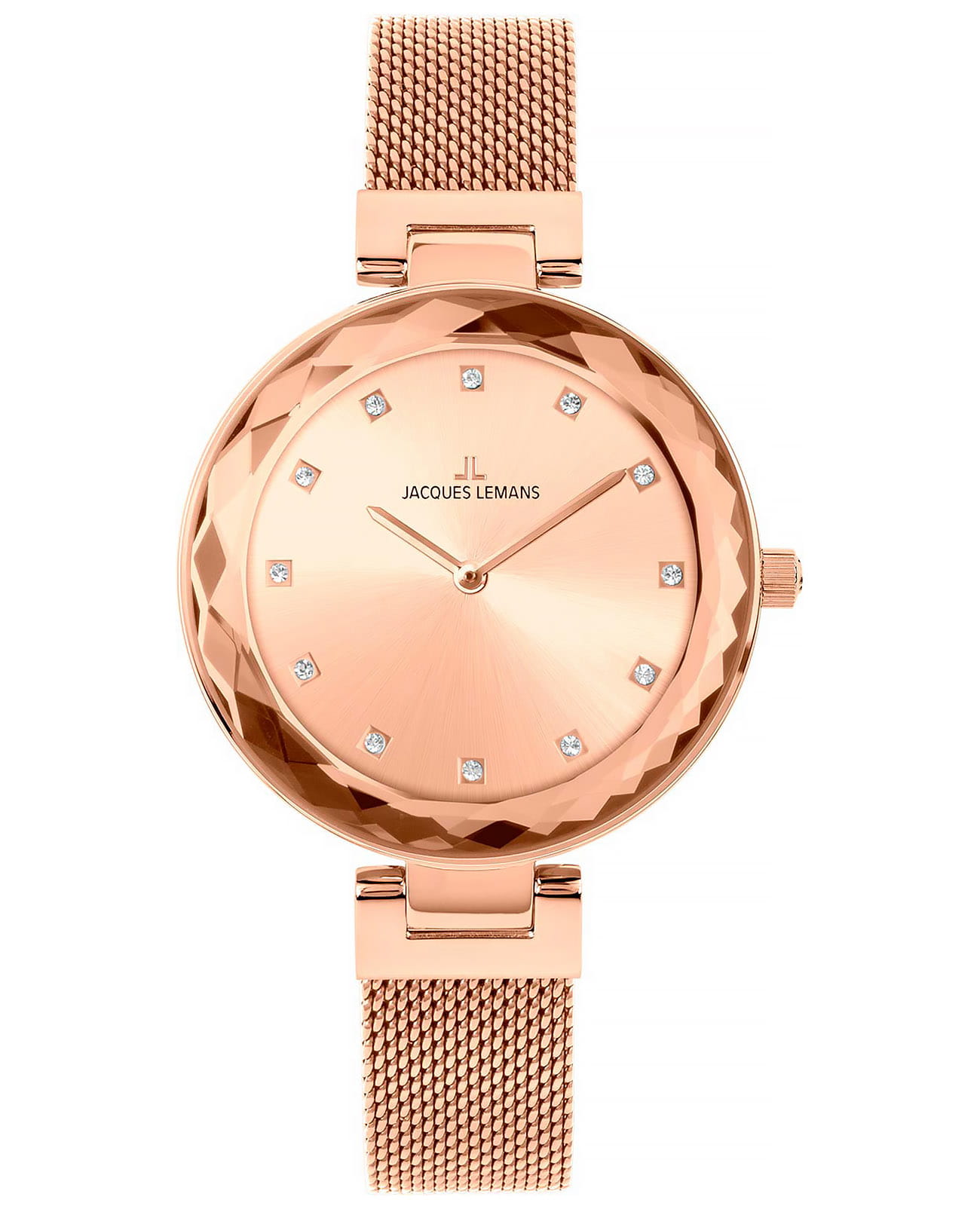 Классические часы в современном прочтении от Jacques Lemans. Корпус круглой формы диаметром 38 мм сделан из нержавеющей стали с IP-покрытиемIP-покрытиеМетод ионного напыления. Демонстрирует повышенную устойчивость к истиранию, окислению и химическим веществам. Под воздействием высокого давления и температуры около 1500°C молекулы металла надёжно соединяются с частицами корпуса часов.: этот материал известен своими гипоаллергенными свойствами. БезельБезельВнешний ободок, закрепляющий стекло. В спортивных часах так называется поворотное кольцо с делениями на циферблате, выполняет роль таймера – замеряет отрезки времени на шкале. Неподвижный безель – элемент декора. Однонаправленно вращающийся безель на дайверских часах позволяет фиксировать моменты погружения и выныривания на поверхность. с многочисленными гранями привлекает внимание к лаконичному и хорошо читаемому циферблату черного цвета. Роль маркеров часов выполняют кристаллы Swarovski. В часах установлено ударопрочное минеральное стеклоМинеральное стеклоМинеральное стекло представляет собой искусственно выращенный минерал кварца. Такое стекло отличается особой устойчивостью к повреждениям и царапинам. Уступает по некоторым качествам сапфировому стеклу. Crystex.