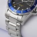 Мужские часы Jacques Lemans Hybromatic 1-2170J с минеральным стекломМинеральное стеклоМинеральное стекло представляет собой искусственно выращенный минерал кварца. Такое стекло отличается особой устойчивостью к повреждениям и царапинам. Уступает по некоторым качествам сапфировому стеклу., гибрид кварца и механики с автоподзаводом. Корпус выполенен из нержавеющей стали. Вращающийся безельБезельВнешний ободок, закрепляющий стекло. В спортивных часах так называется поворотное кольцо с делениями на циферблате, выполняет роль таймера – замеряет отрезки времени на шкале. Неподвижный безель – элемент декора. Однонаправленно вращающийся безель на дайверских часах позволяет фиксировать моменты погружения и выныривания на поверхность. из нержавеющей стали с PVDPVDУльтратонкое покрытие наносится в технике вакуумного напыления, сочетает в себе нитрид титана особой прочности со слоем золота или оксида хрома. Несёт в себе декоративную или защитную функцию. покрытием. Стрелки и метки с люминесцентным покрытиемЛюминесцентное покрытиеПозволяет считывать показания времени в темноте. Производители наносят на стрелки, часовые индексы, безель или поверхность циферблата светонакопительный состав, дающий холодное свечение.. Окошко даты находится в положении 3 часов. Класс водозащиты: 200 метров, позволит плавать, нырять и заниматься другими водными видами спорта. Стальной браслет на раскладной застёжкеРаскладная застёжкаТакой тип застёжки используется только на браслетах из металла. Она никогда не раскрывается полностью, происходит разделение на 2 и более частей. Раскладывающая застёжка снизит вероятность потери часов к минимуму..