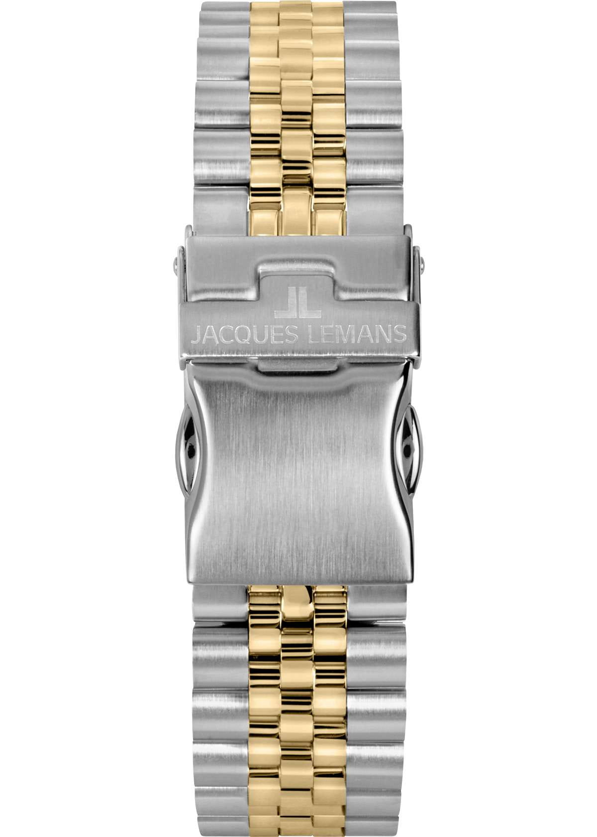 Мужские кварцевые часы Jacques Lemans 1-2205N – лаконичная красота и изысканная элегантность. Оригинальная модель с классическим оформлением станет превосходным завершением образа, наделив его индивидуальным характером. Корпус выполнен из нержавеющей стали серебристого цвета, диаметром 41 мм, что обеспечивает долговечность и утончённый внешний вид. Минеральное стеклоМинеральное стеклоМинеральное стекло представляет собой искусственно выращенный минерал кварца. Такое стекло отличается особой устойчивостью к повреждениям и царапинам. Уступает по некоторым качествам сапфировому стеклу. повышенной прочности Crystex защищает циферблат от царапин. Поворотный безельБезельВнешний ободок, закрепляющий стекло. В спортивных часах так называется поворотное кольцо с делениями на циферблате, выполняет роль таймера – замеряет отрезки времени на шкале. Неподвижный безель – элемент декора. Однонаправленно вращающийся безель на дайверских часах позволяет фиксировать моменты погружения и выныривания на поверхность. с PVD-покрытиемPVDУльтратонкое покрытие наносится в технике вакуумного напыления, сочетает в себе нитрид титана особой прочности со слоем золота или оксида хрома. Несёт в себе декоративную или защитную функцию. черно-золотого цвета. Стальной браслет с частичным PVD-покрытиемPVDУльтратонкое покрытие наносится в технике вакуумного напыления, сочетает в себе нитрид титана особой прочности со слоем золота или оксида хрома. Несёт в себе декоративную или защитную функцию. на раскладной застёжке с фиксаторомРаскладная застёжкаТакой тип застёжки используется только на браслетах из металла. Она никогда не раскрывается полностью, происходит разделение на 2 и более частей. Раскладывающая застёжка снизит вероятность потери часов к минимуму. обеспечивает комфортное ношение. Водозащита 200 метров позволит плавать, нырять и заниматься другими водными видами спорта. Стрелки и метки с люминесцентным покрытиемЛюминесцентное покрытиеПозволяет считывать показания времени в темноте. Производители наносят на стрелки, часовые индексы, безель или поверхность циферблата светонакопительный состав, дающий холодное свечение. позволяющие легко определять время даже в темноте. Окошко даты находится в положении 6 часов. Рифленая заводная головка с защитой. Это аксессуар для мужчины, который ценит классический стиль и функциональность.
