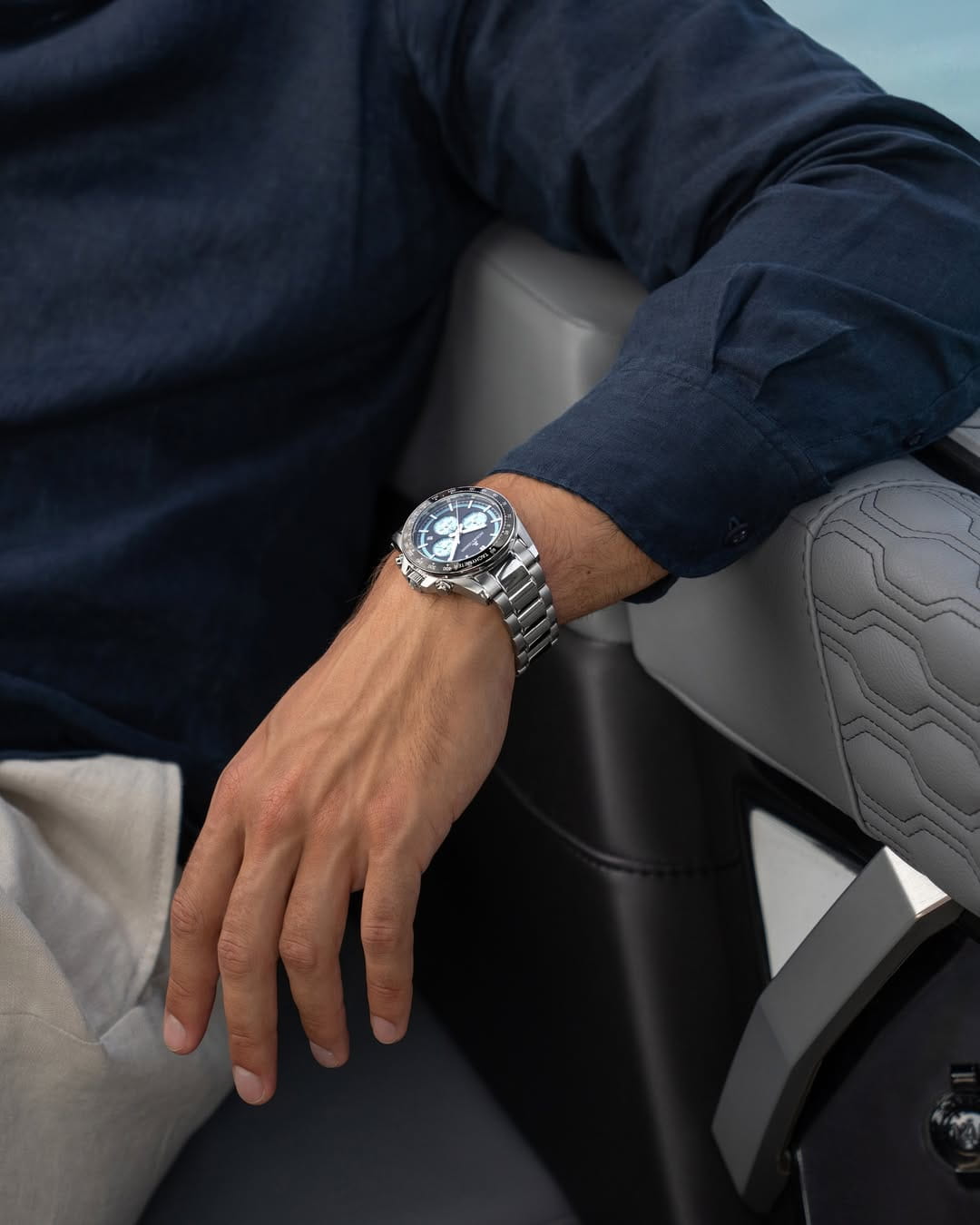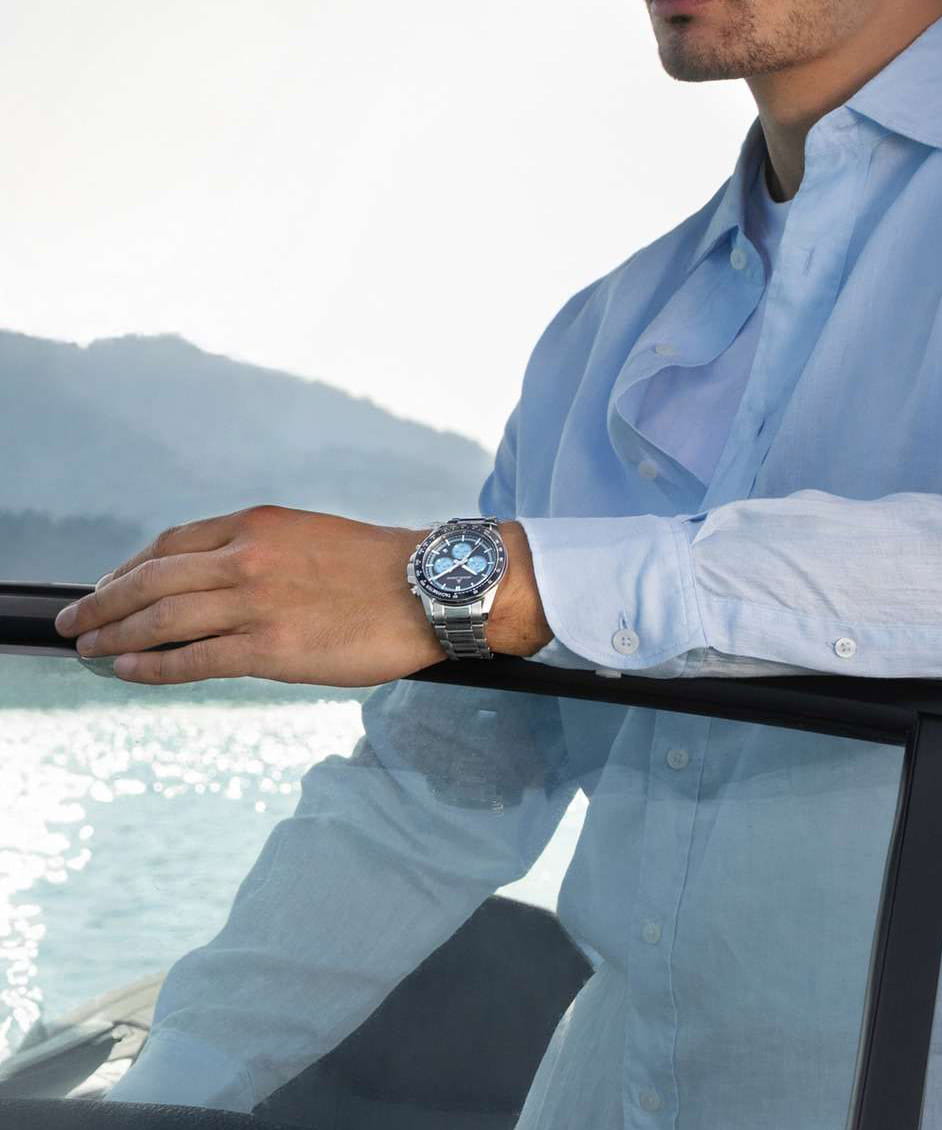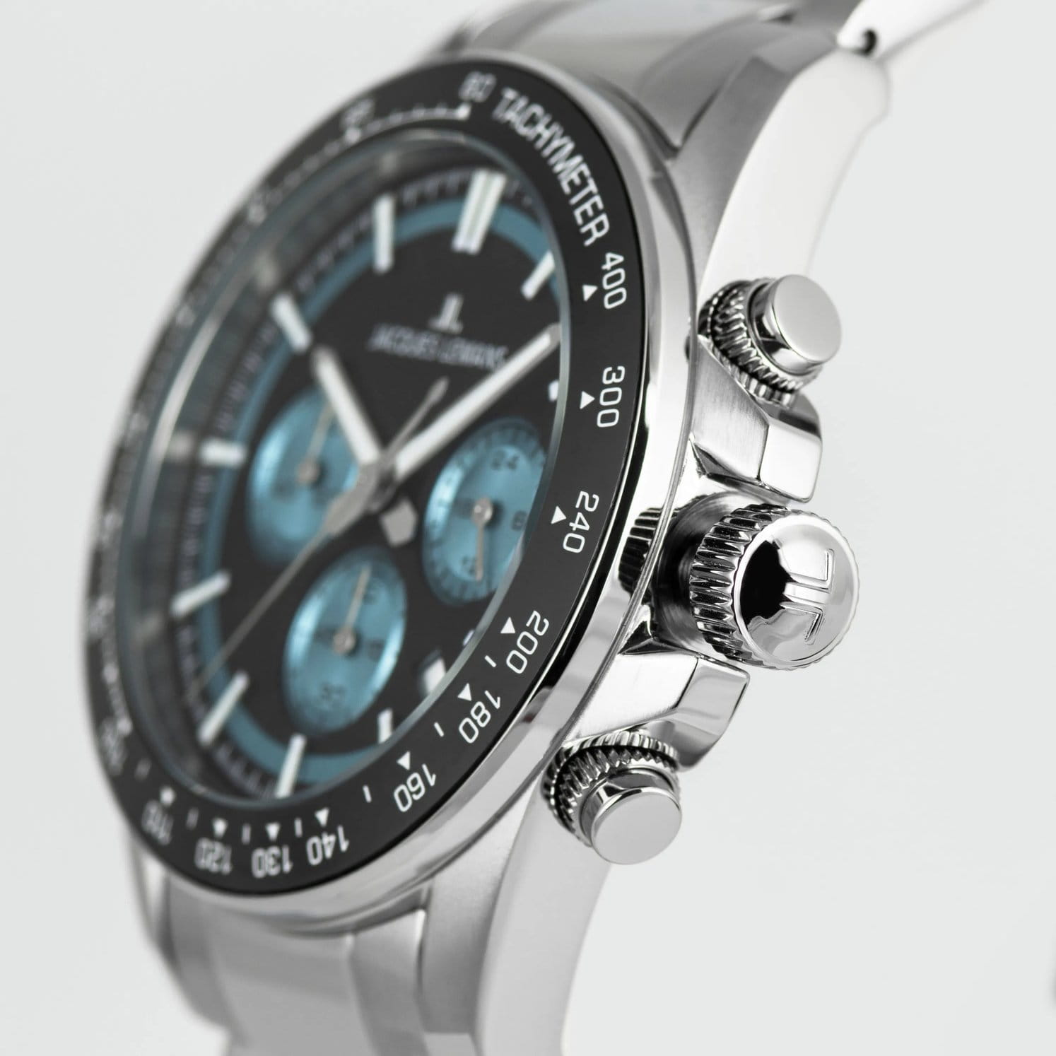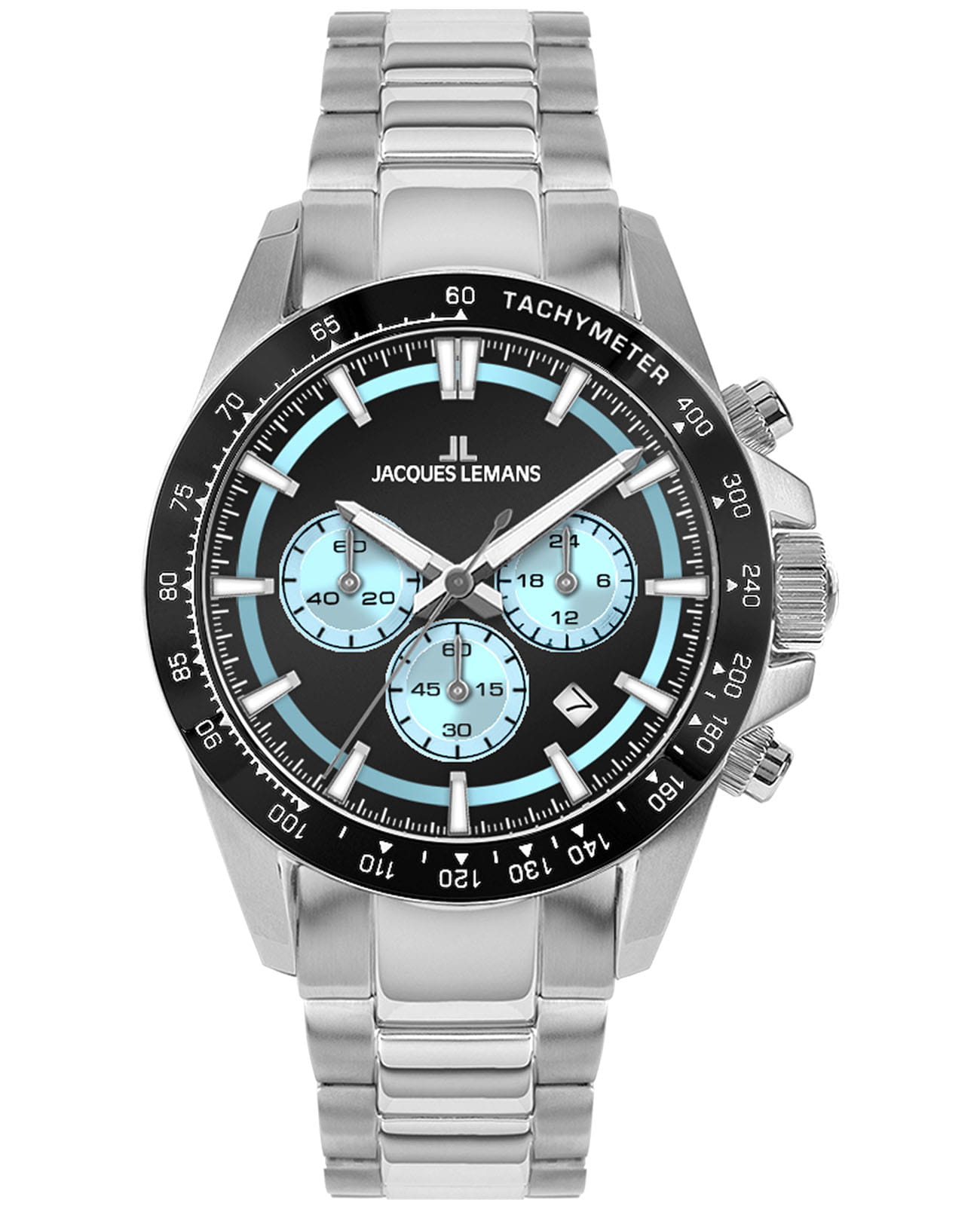 Мужские кварцевые часы-хронографХронографФункция позволяет измерять отрезки времени с особой точностью: часы, минуты, секунды. Верным признаком хронографа является наличие на циферблате 3 дополнительных окошек-счётчиков. с секундомеромСекундомерСекундоме́р — прибор, способный измерять интервалы времени с точностью до долей секунды. Jacques Lemans 1-2207B – лаконичная красота и изысканная элегантность. Оригинальная модель с классическим оформлением станет превосходным завершением образа, наделив его индивидуальным характером. Корпус выполнен из нержавеющей стали серебристого цвета, диаметром 43 мм, что обеспечивает долговечность и утончённый внешний вид. Минеральное стеклоМинеральное стеклоМинеральное стекло представляет собой искусственно выращенный минерал кварца. Такое стекло отличается особой устойчивостью к повреждениям и царапинам. Уступает по некоторым качествам сапфировому стеклу. повышенной прочности Crystex защищает циферблат от царапин. Неподвижный безельБезельВнешний ободок, закрепляющий стекло. В спортивных часах так называется поворотное кольцо с делениями на циферблате, выполняет роль таймера – замеряет отрезки времени на шкале. Неподвижный безель – элемент декора. Однонаправленно вращающийся безель на дайверских часах позволяет фиксировать моменты погружения и выныривания на поверхность. с PVD-покрытиемPVDУльтратонкое покрытие наносится в технике вакуумного напыления, сочетает в себе нитрид титана особой прочности со слоем золота или оксида хрома. Несёт в себе декоративную или защитную функцию. и тахиметромТахиметрРазмеченная шкала, располагается на ободке или безеле часов. Тахиметр позволяет рассчитать скорость на определённом участке пути, расстояние измеряется в километрах или милях.. Стальной браслет на раскладной застёжке с фиксаторомРаскладная застёжкаТакой тип застёжки используется только на браслетах из металла. Она никогда не раскрывается полностью, происходит разделение на 2 и более частей. Раскладывающая застёжка снизит вероятность потери часов к минимуму. обеспечивает комфортное ношение Водозащита 200 метров позволит плавать, нырять и заниматься другими водными видами спорта. Стрелки и метки с люминесцентным покрытиемЛюминесцентное покрытиеПозволяет считывать показания времени в темноте. Производители наносят на стрелки, часовые индексы, безель или поверхность циферблата светонакопительный состав, дающий холодное свечение. позволяющие легко определять время даже в темноте. 12-ти и 24-х часовой формат времени. Окошко даты находится в положении между 4 и 5 часами. Рифленая заводная головка с защитой. Это аксессуар для мужчины, который ценит классический стиль и функциональность.