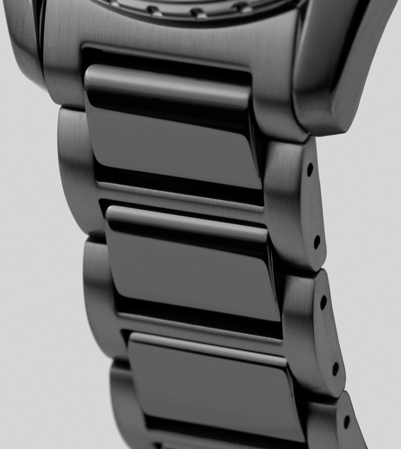 Часы с явными спортивными акцентами могут выглядеть элегантно. Крупный корпус диаметром 34 мм сделан из нержавеющей стали с PVD-покрытиемPVDУльтратонкое покрытие наносится в технике вакуумного напыления, сочетает в себе нитрид титана особой прочности со слоем золота или оксида хрома. Несёт в себе декоративную или защитную функцию., на широкий безельБезельВнешний ободок, закрепляющий стекло. В спортивных часах так называется поворотное кольцо с делениями на циферблате, выполняет роль таймера – замеряет отрезки времени на шкале. Неподвижный безель – элемент декора. Однонаправленно вращающийся безель на дайверских часах позволяет фиксировать моменты погружения и выныривания на поверхность. вынесена дополнительная индикация. Точный кварцевый механизм отвечает за движение хорошо читаемых стрелок, покрытых люминесцентным составомЛюминесцентное покрытиеПозволяет считывать показания времени в темноте. Производители наносят на стрелки, часовые индексы, безель или поверхность циферблата светонакопительный состав, дающий холодное свечение.. Таким же образом выделены и индексы, поэтому время по этим часам легко определить даже в темноте. В положении «3 часа» находится окошко даты. Еще одна спортивная составляющая — повышенная водостойкость, равная 10 атмосфер: в часах можно плавать. Вместе с этим, модель идеально впишется и в классический образ, и в повседневный. Особая деталь — звенья браслета из высокотехнологичной керамикиВысокотехнологичная керамикаИнновационный запатентованный Rado материал с гладкой или матовой поверхностью. Керамика за счёт кристаллической структуры обладает повышенной устойчивостью от возникновения царапин. Материал способен принимать температуру тела человека, обеспечивая невероятный комфорт при ношении. черного цвета, в тон циферблату. Этот материал удобно носить даже в мороз: он быстро нагревается до комфортной температуры тела. К тому же, керамика стойко сопротивляется появлению микроцарапин. На браслет установлена раскладная застёжкаРаскладная застёжкаТакой тип застёжки используется только на браслетах из металла. Она никогда не раскрывается полностью, происходит разделение на 2 и более частей. Раскладывающая застёжка снизит вероятность потери часов к минимуму..