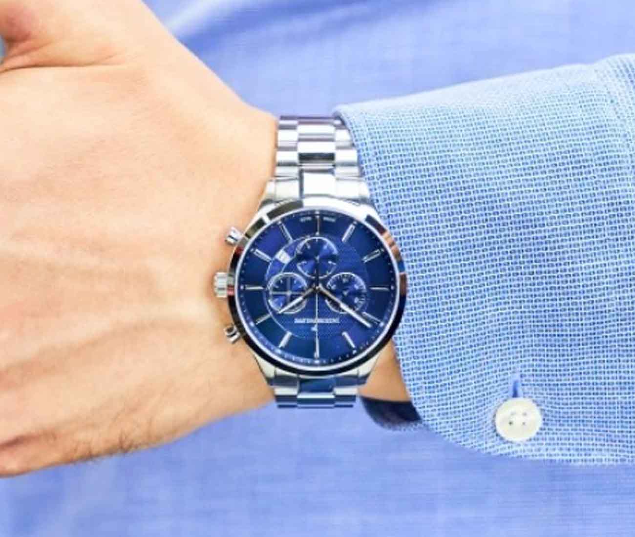 Часы Jacques Philippe Apollo JPQGC031336N — это гармоничное сочетание элегантного дизайна, современных швейцарских технологий и безупречного качества исполнения. Кварцевый механизм Ronda 5040.D.0001 обеспечивает точность хода. Модель оснащена точным кварцевым механизмом с функцией хронографаХронографФункция позволяет измерять отрезки времени с особой точностью: часы, минуты, секунды. Верным признаком хронографа является наличие на циферблате 3 дополнительных окошек-счётчиков. с секундомеромСекундомерСекундоме́р — прибор, способный измерять интервалы времени с точностью до долей секунды., что позволяет не только отслеживать время, но и использовать дополнительные возможности для активного образа жизни. Корпус диаметром 43 мм выполнен из прочной нержавеющей стали 316L, а сапфировое стеклоСапфировое стеклоПрочный и надёжный материал из кристалла сапфира синтетического происхождения, характеризующийся особой твёрдостью и устойчивостью к царапинам и повреждениям. надежно защищает синий циферблат от царапин и других повреждений. Окошко даты расположено между отметками 4 и 5 часов, что добавляет удобства в повседневном использовании. Для удобства использования в темное время суток предусмотрено люминесцентное покрытиеЛюминесцентное покрытиеПозволяет считывать показания времени в темноте. Производители наносят на стрелки, часовые индексы, безель или поверхность циферблата светонакопительный состав, дающий холодное свечение. стрелок. Браслет из нержавеющей стали подчеркивает современный стиль изделия, а застежка «бабочка»Застёжка "бабочка"Такой вид застёжки дополняется предохранителями, помогающими избежать случайного раскрытия браслета. Обладают изящным исполнением. , раскладывающаяся при нажатии кнопок двойной блокировки, обеспечивает комфортное ношение и надежную фиксацию на запястье. Водозащита до 5 атмосфер позволяет не беспокоиться о случайных брызгах и дождевых каплях.