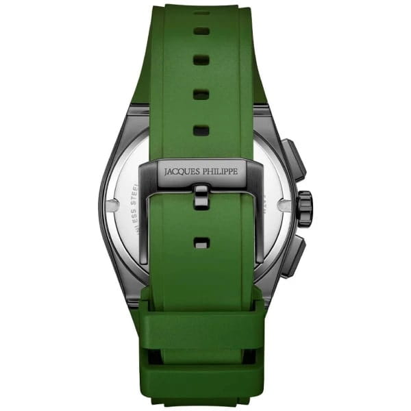 Часы Jacques Philippe JPQGC4184XXG из коллекции Aurora — элегантные мужские часы, сочетающие в себе швейцарское качество и современный дизайн. Корпус диаметром 42 мм выполнен из нержавеющей стали, а зеленый циферблат защищён сапфировым стекломСапфировое стеклоПрочный и надёжный материал из кристалла сапфира синтетического происхождения, характеризующийся особой твёрдостью и устойчивостью к царапинам и повреждениям..