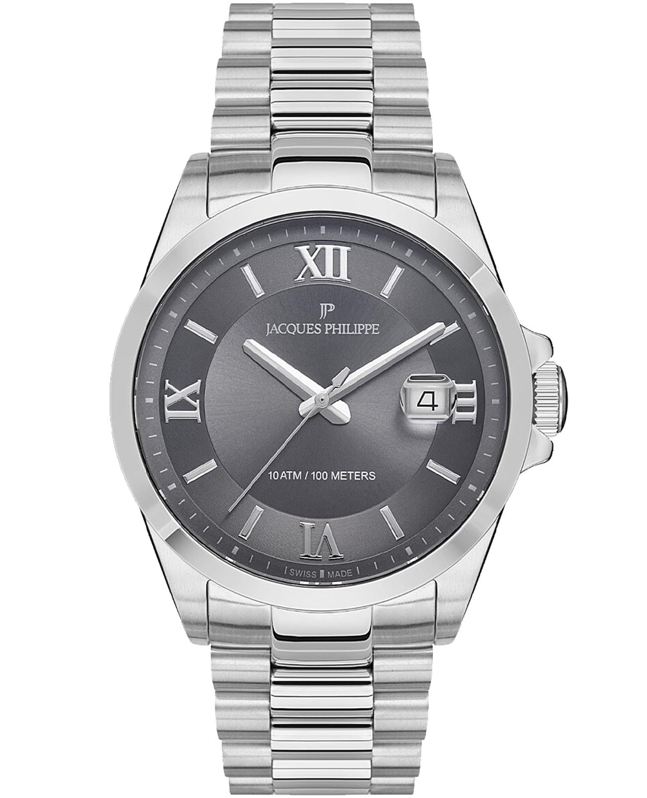 Швейцарские Женские часы Jacques Philippe Infinitum JPQGS331346, кварцевый механизм с высокой точностью. Сапфировое стеклоСапфировое стеклоПрочный и надёжный материал из кристалла сапфира синтетического происхождения, характеризующийся особой твёрдостью и устойчивостью к царапинам и повреждениям. устойчивое к появлению царапин, обладающее высокой прозрачностью. Корпус часов изготовлен из нержавеющей стали. Стрелки с люминесцентным покрытиемЛюминесцентное покрытиеПозволяет считывать показания времени в темноте. Производители наносят на стрелки, часовые индексы, безель или поверхность циферблата светонакопительный состав, дающий холодное свечение.. Окошко даты находится в положении 3 часа. Класс водозащиты: 100 метров, позволит плавать, нырять и заниматься другими водными видами спорта. Стальной браслет на застёжке «бабочка» с кнопкамиЗастёжка "бабочка"Такой вид застёжки дополняется предохранителями, помогающими избежать случайного раскрытия браслета. Обладают изящным исполнением. .