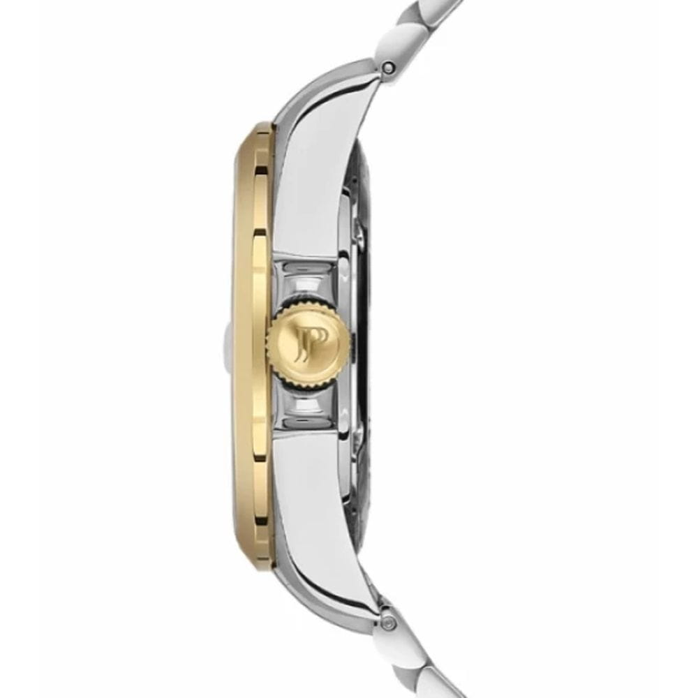 Jacques Philippe JPQGS3373X8V2 — выразительная мужская модель с лаконичным дизайном и высоким уровнем надёжности. Корпус диаметром 40 мм выполнен из нержавеющей стали и отличается уверенным, но сдержанным силуэтом. Толщина корпуса составляет около 12 мм, что придаёт модели визуальную прочность и делает её заметной на запястье. БезельБезельВнешний ободок, закрепляющий стекло. В спортивных часах так называется поворотное кольцо с делениями на циферблате, выполняет роль таймера – замеряет отрезки времени на шкале. Неподвижный безель – элемент декора. Однонаправленно вращающийся безель на дайверских часах позволяет фиксировать моменты погружения и выныривания на поверхность. с PVD-покрытиемPVDУльтратонкое покрытие наносится в технике вакуумного напыления, сочетает в себе нитрид титана особой прочности со слоем золота или оксида хрома. Несёт в себе декоративную или защитную функцию..