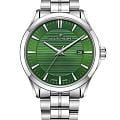 Jacques Philippe JPQGS7913X6 — стильные мужские часы в классическом формате с акцентом на надёжность и элегантность. Корпус круглой формы диаметром 40 мм из нержавеющей стали отличается утонченным силуэтом, обеспечивая комфорт при длительном ношении . Циферблат оформлен лаконично: тонкие стрелки и минималистичные часовые метки с люминесцентным покрытиемЛюминесцентное покрытиеПозволяет считывать показания времени в темноте. Производители наносят на стрелки, часовые индексы, безель или поверхность циферблата светонакопительный состав, дающий холодное свечение. подчёркивают строгий характер модели. Встроенная функция отображения даты придаёт часам практичность без лишнего визуального нагромождения. Поверхность защищает сапфировое стеклоСапфировое стеклоПрочный и надёжный материал из кристалла сапфира синтетического происхождения, характеризующийся особой твёрдостью и устойчивостью к царапинам и повреждениям. — устойчивое к царапинам и бликам. Внутри используется точный швейцарский кварцевый механизм, не требующий подзавода и сохраняющий стабильную работу без сложного обслуживания. Модель оснащена металлическим браслетом из нержавеющей стали в оттенке металлик на застёжке-бабочке с кнопкамиЗастёжка "бабочка"Такой вид застёжки дополняется предохранителями, помогающими избежать случайного раскрытия браслета. Обладают изящным исполнением. , что обеспечивает надёжную посадку и солидный внешний вид . Водозащита составляет до 5 ATM, — часы без проблем выдерживают случайный контакт с водой в повседневной эксплуатации . Jacques Philippe — гармоничное сочетание классического стиля, точного швейцарского кварца и практичности в одном надёжном аксессуаре.