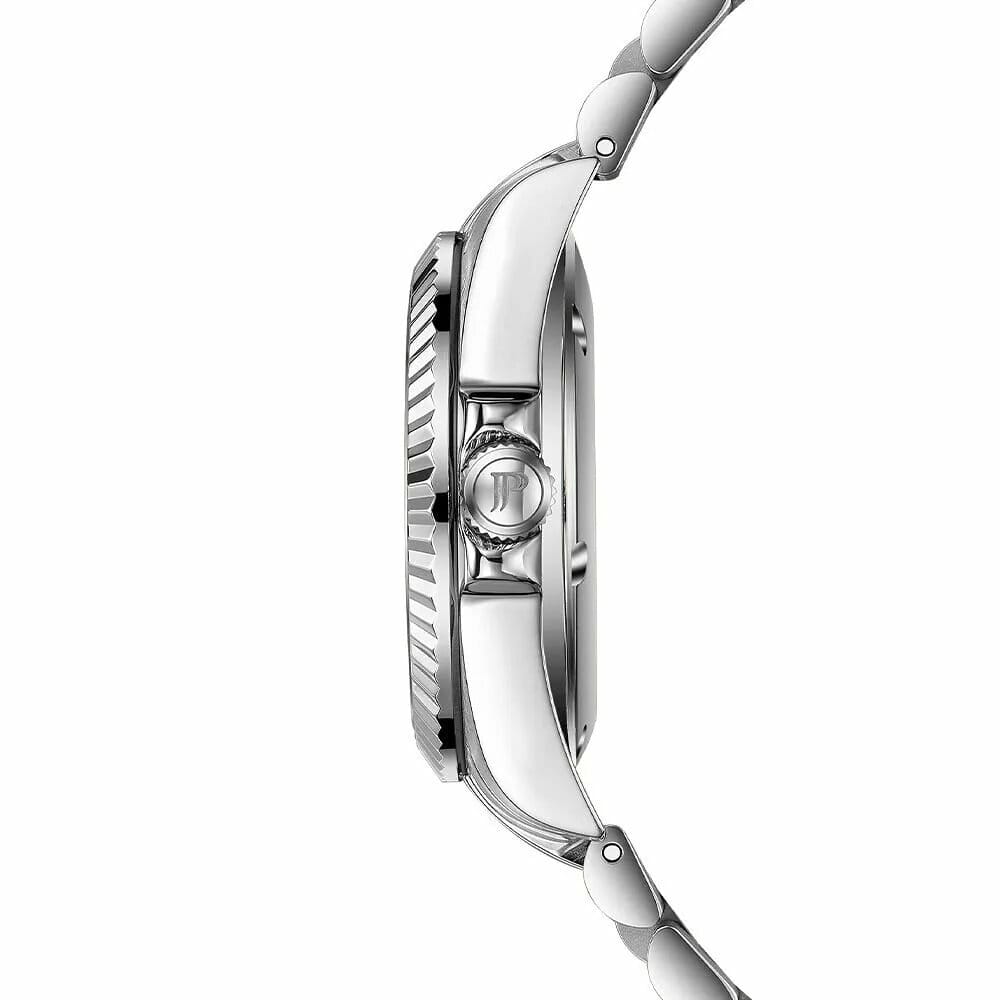 Jacques Philippe JPQLS5813X6 — женские часы в сдержанном классическом исполнении с акцентом на простоту и надёжность. Корпус диаметром 32 мм выполнен из нержавеющей стали — делает модель универсальной и комфортной в повседневной носке. Циферблат оформлен в светлом металлическом тоне с тонкими стрелками, лаконичными часовыми метками с люминесцентным покрытиемЛюминесцентное покрытиеПозволяет считывать показания времени в темноте. Производители наносят на стрелки, часовые индексы, безель или поверхность циферблата светонакопительный состав, дающий холодное свечение. и аккуратным окошком даты в позиции «3 часа». Минималистичный стиль подчёркивает строгость и чистоту дизайна. Поверхность защищена устойчивым к царапинам сапфировым стекломСапфировое стеклоПрочный и надёжный материал из кристалла сапфира синтетического происхождения, характеризующийся особой твёрдостью и устойчивостью к царапинам и повреждениям., которое обеспечивает хорошую читаемость и долговечность. Механизм — точный швейцарский кварц, не требующий подзавода. Он обеспечивает стабильную и бесперебойную работу часов, сохраняя точность в любых условиях. Браслет из нержавеющей стали на застёжке-бабочке с кнопкамиЗастёжка "бабочка"Такой вид застёжки дополняется предохранителями, помогающими избежать случайного раскрытия браслета. Обладают изящным исполнением. визуально продолжает корпус и фиксируется с помощью надёжной застёжки, обеспечивая комфортную посадку. Водозащита до 10 ATM позволяет использовать часы не только в повседневной жизни, но и при активности на воде. Jacques Philippe — это надёжная и универсальная модель для тех, кто ценит швейцарскую точность, простоту и уверенный стиль без лишних деталей.