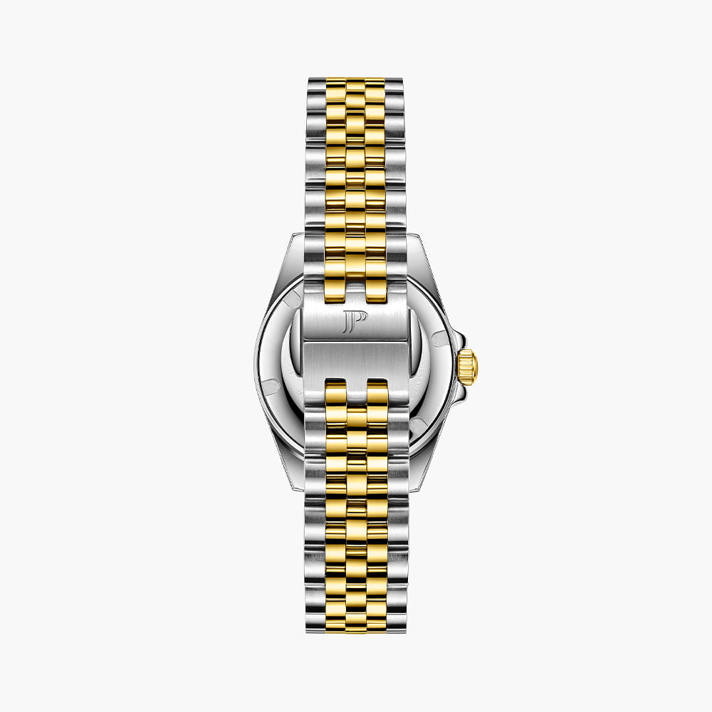 Jacques Philippe JPQLS5873X8 — женские часы в сдержанном классическом исполнении с акцентом на простоту и надёжность. Корпус диаметром 32 мм выполнен из нержавеющей стали — делает модель универсальной и комфортной в повседневной носке. Циферблат оформлен в светлом металлическом тоне с тонкими стрелками, лаконичными часовыми метками и аккуратным окошком даты в позиции «3 часа». Минималистичный стиль подчёркивает строгость и чистоту дизайна. Поверхность защищена устойчивым к царапинам сапфировым стекломСапфировое стеклоПрочный и надёжный материал из кристалла сапфира синтетического происхождения, характеризующийся особой твёрдостью и устойчивостью к царапинам и повреждениям., которое обеспечивает хорошую читаемость и долговечность. БезельБезельВнешний ободок, закрепляющий стекло. В спортивных часах так называется поворотное кольцо с делениями на циферблате, выполняет роль таймера – замеряет отрезки времени на шкале. Неподвижный безель – элемент декора. Однонаправленно вращающийся безель на дайверских часах позволяет фиксировать моменты погружения и выныривания на поверхность. с PVD-покрытиемPVDУльтратонкое покрытие наносится в технике вакуумного напыления, сочетает в себе нитрид титана особой прочности со слоем золота или оксида хрома. Несёт в себе декоративную или защитную функцию.. Механизм — точный швейцарский кварц, не требующий подзавода. Он обеспечивает стабильную и бесперебойную работу часов, сохраняя точность в любых условиях. Браслет из нержавеющей стали с PVD-покрытиемPVDУльтратонкое покрытие наносится в технике вакуумного напыления, сочетает в себе нитрид титана особой прочности со слоем золота или оксида хрома. Несёт в себе декоративную или защитную функцию. визуально продолжает корпус и фиксируется с помощью надёжной застёжки, обеспечивая комфортную посадку. Водозащита до 10 ATM позволяет использовать часы не только в повседневной жизни, но и при активности на воде. Jacques Philippe — это надёжная и универсальная модель для тех, кто ценит швейцарскую точность, простоту и уверенный стиль без лишних деталей.