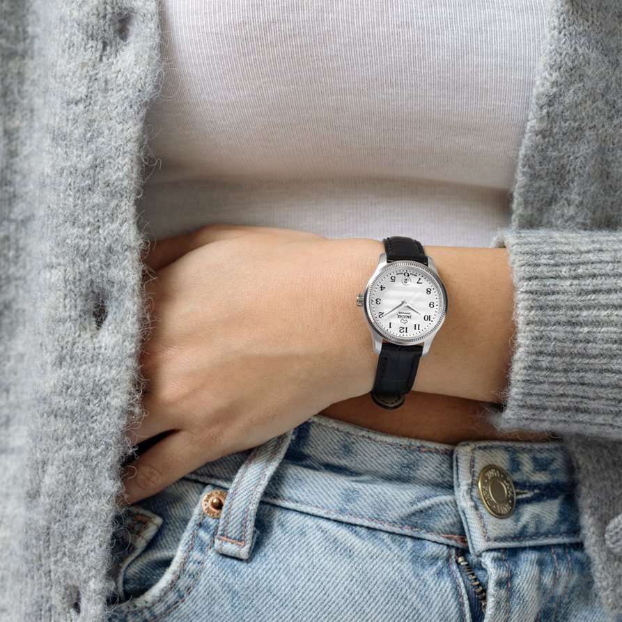 Женские швейцарские часы Jaguar ESSENTIA J1046/1 — это стильное сочетание элегантности и современного дизайна. Корпус из нержавеющей стали диаметром 29 мм идеально сбалансирован и элегантен. Сапфировое стеклоСапфировое стеклоПрочный и надёжный материал из кристалла сапфира синтетического происхождения, характеризующийся особой твёрдостью и устойчивостью к царапинам и повреждениям. с антибликовым покрытием защищает циферблат от царапин и обеспечивает отличную читаемость при любом освещении. Кожаный ремешок на застёжке-бабочке с кнопкамиЗастёжка "бабочка"Такой вид застёжки дополняется предохранителями, помогающими избежать случайного раскрытия браслета. Обладают изящным исполнением. идеально дополняют дизайн часов, обеспечивая комфортное ношение. Часы обладают впечатляющей водонепроницаемостью до 5 бар (50 метров), что делает их идеальными для повседневной носки. Тщательно продуманный циферблат и изысканные детали делают эти часы незаменимым аксессуаром для любого случая, от официальных мероприятий до повседневного использования.