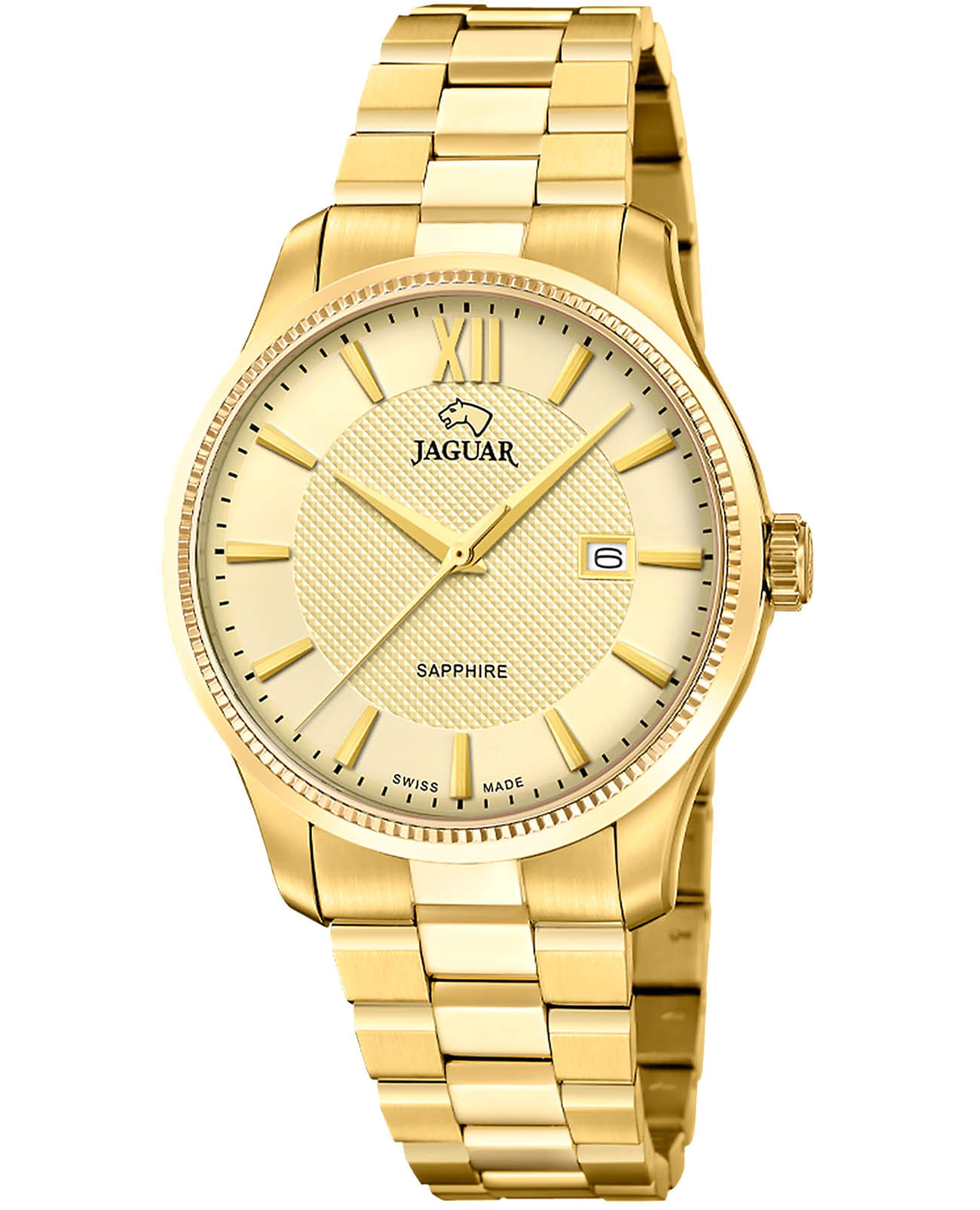 Женские швейцарские часы Jaguar ESSENTIA J1047/1 — это стильное сочетание элегантности и современного дизайна. Корпус из нержавеющей стали с PVD-покрытиемPVDУльтратонкое покрытие наносится в технике вакуумного напыления, сочетает в себе нитрид титана особой прочности со слоем золота или оксида хрома. Несёт в себе декоративную или защитную функцию. золотистого цвета, диаметром 29 мм идеально сбалансирован и элегантен. Сапфировое стеклоСапфировое стеклоПрочный и надёжный материал из кристалла сапфира синтетического происхождения, характеризующийся особой твёрдостью и устойчивостью к царапинам и повреждениям. с антибликовым покрытием защищает циферблат от царапин и обеспечивает отличную читаемость при любом освещении. Стальной браслет с PVD-покрытиемPVDУльтратонкое покрытие наносится в технике вакуумного напыления, сочетает в себе нитрид титана особой прочности со слоем золота или оксида хрома. Несёт в себе декоративную или защитную функцию. на застёжке-бабочкеЗастёжка "бабочка"Такой вид застёжки дополняется предохранителями, помогающими избежать случайного раскрытия браслета. Обладают изящным исполнением. идеально дополняют дизайн часов, обеспечивая комфортное ношение. Часы обладают впечатляющей водонепроницаемостью до 5 бар (50 метров), что делает их идеальными для повседневной носки. Метки виде римских цифр и декорированных цирконов. Тщательно продуманный циферблат и изысканные детали делают эти часы незаменимым аксессуаром для любого случая, от официальных мероприятий до повседневного использования.