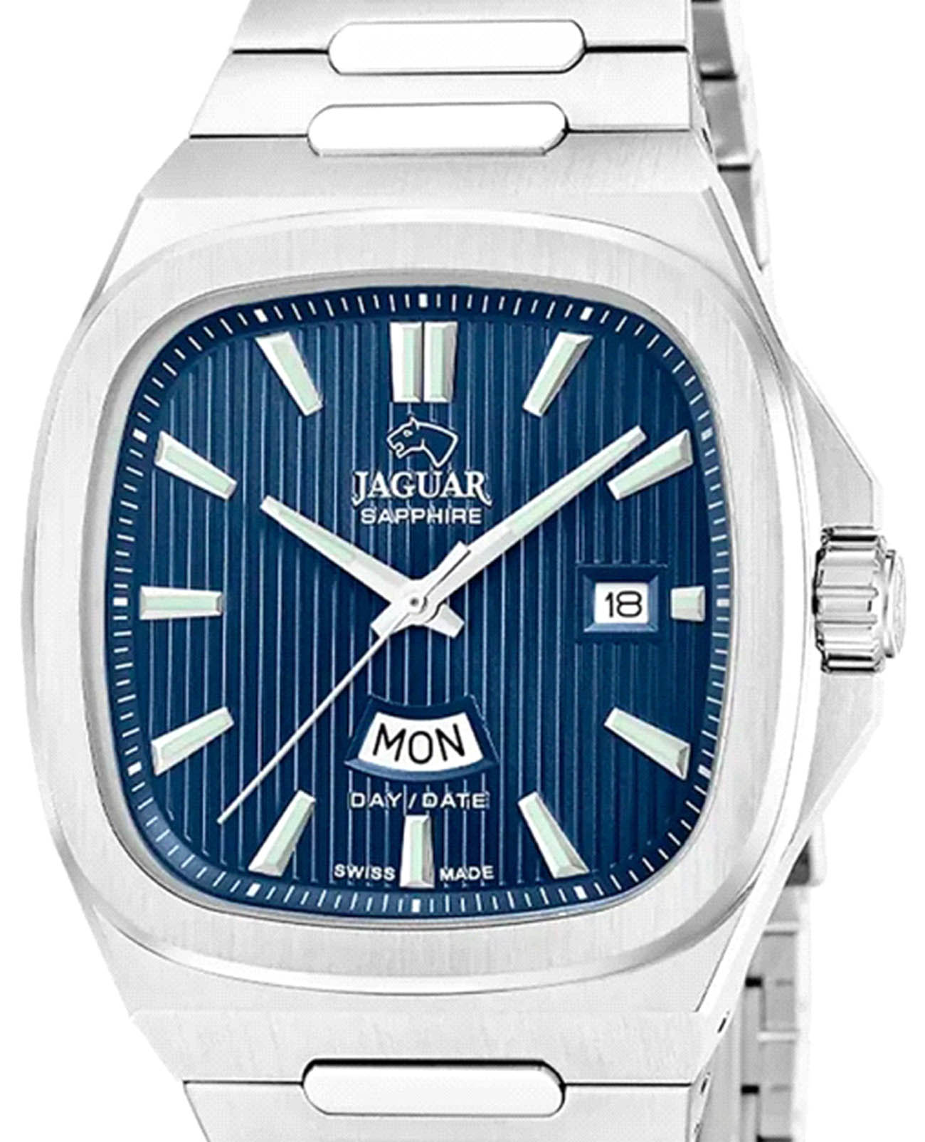 Мужские швейцарские часы Jaguar Rond Carre J1049/2 — это стильное сочетание элегантности и современного дизайна. Корпус из нержавеющей стали диаметром 41 мм идеально сбалансирован и элегантен. Сапфировое стеклоСапфировое стеклоПрочный и надёжный материал из кристалла сапфира синтетического происхождения, характеризующийся особой твёрдостью и устойчивостью к царапинам и повреждениям. с антибликовым покрытием защищает циферблат от царапин и обеспечивает отличную читаемость при любом освещении. Стальной браслет на застёжке-бабочке с кнопкамиЗастёжка "бабочка"Такой вид застёжки дополняется предохранителями, помогающими избежать случайного раскрытия браслета. Обладают изящным исполнением. идеально дополняют дизайн часов, обеспечивая комфортное ношение. Стрелки и метки на циферблате имеют люминесцентное покрытиеЛюминесцентное покрытиеПозволяет считывать показания времени в темноте. Производители наносят на стрелки, часовые индексы, безель или поверхность циферблата светонакопительный состав, дающий холодное свечение. позволяющее легко определять время даже в темноте. В часах есть функции отображение даты в позиции "3 часа" и дня недели на "6 часов" с помощью которой вы сможете измерять время с высокой точностью. Часы обладают водонепроницаемостью 50 метров, что позволит защитить корпус от случайных брызг или капель дождя.