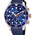 Женские швейцарские часы-хронографХронографФункция позволяет измерять отрезки времени с особой точностью: часы, минуты, секунды. Верным признаком хронографа является наличие на циферблате 3 дополнительных окошек-счётчиков. Jaguar Woman J890/4. Кварцевый швейцарский калибр Ronda 5030D. Сапфировое стеклоСапфировое стеклоПрочный и надёжный материал из кристалла сапфира синтетического происхождения, характеризующийся особой твёрдостью и устойчивостью к царапинам и повреждениям. устойчивое к мелким механическим повреждениям. Корпус часов изготовлен из нержавеющей стали. Стрелки и метки с люминесцентным покрытиемЛюминесцентное покрытиеПозволяет считывать показания времени в темноте. Производители наносят на стрелки, часовые индексы, безель или поверхность циферблата светонакопительный состав, дающий холодное свечение.. Окошко даты находится в положении 6 часов. Класс водозащиты: 200 метров, позволит плавать, нырять и заниматься другими водными видами спорта. Силиконовый ремешок на стандартной застёжке. БезельБезельВнешний ободок, закрепляющий стекло. В спортивных часах так называется поворотное кольцо с делениями на циферблате, выполняет роль таймера – замеряет отрезки времени на шкале. Неподвижный безель – элемент декора. Однонаправленно вращающийся безель на дайверских часах позволяет фиксировать моменты погружения и выныривания на поверхность. с PVD-покрытиемPVDУльтратонкое покрытие наносится в технике вакуумного напыления, сочетает в себе нитрид титана особой прочности со слоем золота или оксида хрома. Несёт в себе декоративную или защитную функцию..