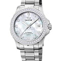 Женские швейцарские часы Jaguar Woman J892/1. Кварцевый швейцарский калибр Ronda 705. Сапфировое стеклоСапфировое стеклоПрочный и надёжный материал из кристалла сапфира синтетического происхождения, характеризующийся особой твёрдостью и устойчивостью к царапинам и повреждениям. устойчивое к мелким механическим повреждениям. Корпус и браслет часов изготовлены из нержавеющей стали, с безелем, инкрустированным цирконием. Стрелки с люминесцентным покрытиемЛюминесцентное покрытиеПозволяет считывать показания времени в темноте. Производители наносят на стрелки, часовые индексы, безель или поверхность циферблата светонакопительный состав, дающий холодное свечение.. Окошко даты находится в положении 3 часа. Класс водозащиты: 200 метров, позволит плавать, нырять и заниматься другими водными видами спорта. Стальной браслет на раскладной застёжкеРаскладная застёжкаТакой тип застёжки используется только на браслетах из металла. Она никогда не раскрывается полностью, происходит разделение на 2 и более частей. Раскладывающая застёжка снизит вероятность потери часов к минимуму.. Циферблат украшен кристаллами в роли часовых индексов.
