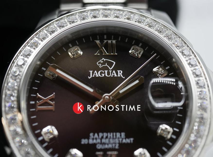 Женские швейцарские часы Jaguar Woman J892/4. Кварцевый швейцарский калибр Ronda 705. Сапфировое стеклоСапфировое стеклоПрочный и надёжный материал из кристалла сапфира синтетического происхождения, характеризующийся особой твёрдостью и устойчивостью к царапинам и повреждениям. устойчивое к мелким механическим повреждениям. Корпус и браслет часов изготовлены из нержавеющей стали, с безелем, инкрустированным цирконием. Стрелки с люминесцентным покрытиемЛюминесцентное покрытиеПозволяет считывать показания времени в темноте. Производители наносят на стрелки, часовые индексы, безель или поверхность циферблата светонакопительный состав, дающий холодное свечение.. Окошко даты находится в положении 3 часа. Класс водозащиты: 200 метров, позволит плавать, нырять и заниматься другими водными видами спорта. Стальной браслет на раскладной застёжкеРаскладная застёжкаТакой тип застёжки используется только на браслетах из металла. Она никогда не раскрывается полностью, происходит разделение на 2 и более частей. Раскладывающая застёжка снизит вероятность потери часов к минимуму.. Циферблат украшен кристаллами в роли часовых индексов.