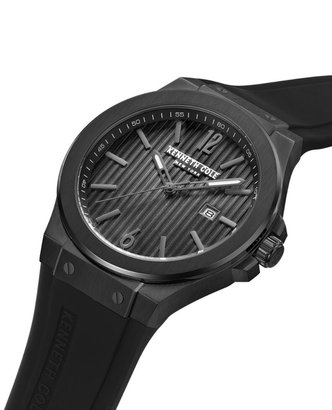 Мужские часы с минеральным стекломМинеральное стеклоМинеральное стекло представляет собой искусственно выращенный минерал кварца. Такое стекло отличается особой устойчивостью к повреждениям и царапинам. Уступает по некоторым качествам сапфировому стеклу. Kenneth Cole Modern Classic KCWGN0034404, кварцевый механизм с высокой точностью. Корпус часов изготовлен из стали с IP-покрытиемIP-покрытиеМетод ионного напыления. Демонстрирует повышенную устойчивость к истиранию, окислению и химическим веществам. Под воздействием высокого давления и температуры около 1500°C молекулы металла надёжно соединяются с частицами корпуса часов.. Окошко даты находится в положенении 3 часа. Стрелки с люминесцентным покрытиемЛюминесцентное покрытиеПозволяет считывать показания времени в темноте. Производители наносят на стрелки, часовые индексы, безель или поверхность циферблата светонакопительный состав, дающий холодное свечение.. Класс водозащиты: 30 метров, позволит защитить корпус от случайных брызг или капель дождя. Силиконовый ремешок на стандартной застежке.