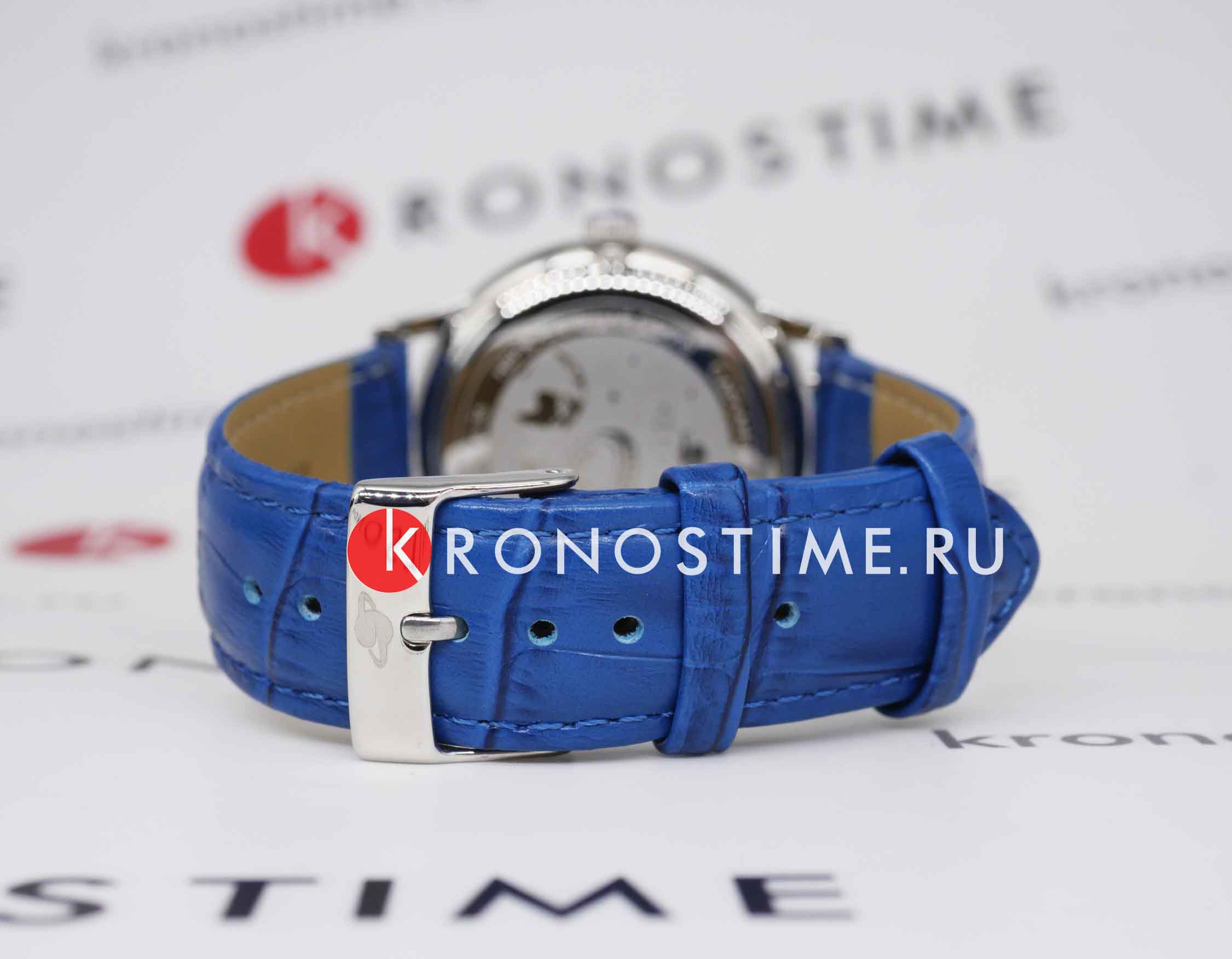 Мужские наручные часы Космос Сириус K 021.16.36 — это сочетание традиций часового искусства 60-70-х годов и футуристического дизайна, вдохновленного космическими исследованиями. Они не только служат напоминанием о прошлом, но и побуждают задуматься о будущем, позволяя наслаждаться качеством и смыслом, вложенными в каждую деталь. Полированный корпус часов выполнен в виде силуэта летающей тарелки благодаря выпуклым формам стекла и нижней части корпуса. Стальные ушки, которые напоминают опоры летающей тарелки, завершает общий образ. На задней крышке часов выгравирован фантазийный сюжет – космическая станция будущего. Синий циферблат в ретро-стиле с выгнутыми краями требует сложной технологии производства, что делает их аналогами часов прошлых эпох. Кончик секундной стрелки изогнут так, чтобы гармонировать с формой циферблата. Выпуклый градиентный циферблат украшен шлифовкой, напоминающей солнечные лучи, и ручными индексами, надежно закрепленными на двух штифтах. Специальное люминесцентное покрытиеЛюминесцентное покрытиеПозволяет считывать показания времени в темноте. Производители наносят на стрелки, часовые индексы, безель или поверхность циферблата светонакопительный состав, дающий холодное свечение. нанесено на часовую, минутную и секундную стрелки, а также на пунктирные метки и окантовку циферблата, создавая эффект светящегося изображения в темноте. Форма минерального стеклаМинеральное стеклоМинеральное стекло представляет собой искусственно выращенный минерал кварца. Такое стекло отличается особой устойчивостью к повреждениям и царапинам. Уступает по некоторым качествам сапфировому стеклу. также тщательно продумана — оно изогнуто как снаружи, так и изнутри. Эта конструкция предотвращает искажение изображения на циферблате, в отличие от традиционных стекол с прямой внутренней частью, которые могут создавать оптические искажения. Часы комплектуются кожаным браслетом синего цвета с прошивкой. Корпус изготовлен из гипоаллергенной стали, что обеспечивает комфорт при ношении. Заводная головка, застежка и ремешок украшены фирменным логотипом, подчеркивающим индивидуальность данной модели.