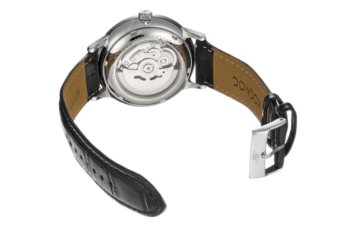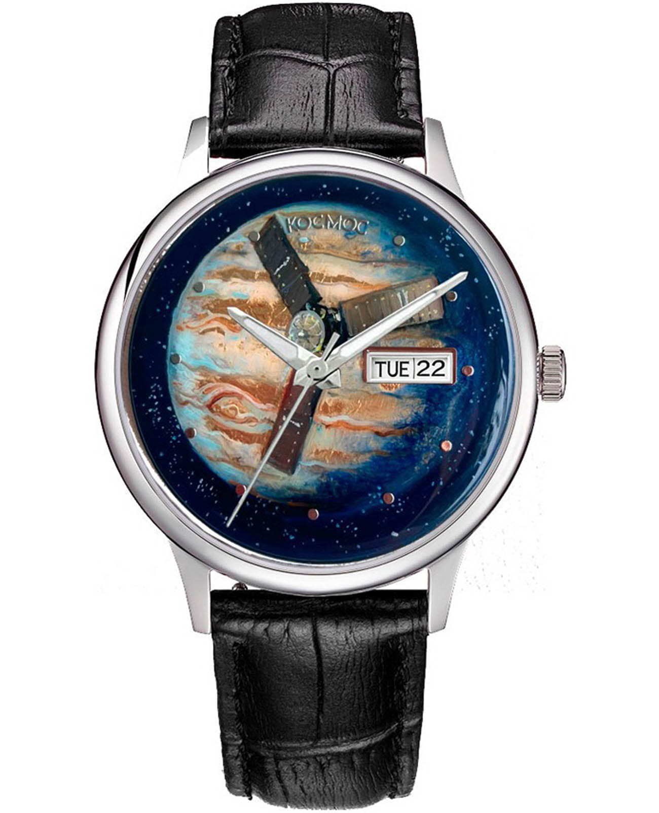 Мужские наручные часы Космос K 043.1 - Юнона — это уникальная модель. Автоматическая межпланетная станция Юнона стала первым космическим аппаратом, который в летний период 2016 года вышел на полярную орбиту Сатурна. Изображение этого газового гиганта занимает центральное место на циферблате часов. Сквозь несколько слоев лака и краски просвечивает тончайший лист фольги, что используется для передачи текстуры поверхности и создания эффекта объема. Процесс постепенной прорисовки деталей довольно длительный: художнику требуется до 50 часов для завершения одного сюжета. Затем миниатюра запекается в специальной печи, что придаёт рисунку необходимую яркость и завершенность. Эти часы созданы в единственном экземпляре. В часах установлен механизм TMI с функцией автоподзавода. Они показывают часы, минуты и секунды, а также дату и день недели, индикатор которых с накладной рамкой расположен в положении «3 часа». За работой механизма можно наблюдать через прозрачную заднюю крышку. Часовая и минутная стрелки c люминесцентным покрытиемЛюминесцентное покрытиеПозволяет считывать показания времени в темноте. Производители наносят на стрелки, часовые индексы, безель или поверхность циферблата светонакопительный состав, дающий холодное свечение., которое светится в темноте. Минеральное стеклоМинеральное стеклоМинеральное стекло представляет собой искусственно выращенный минерал кварца. Такое стекло отличается особой устойчивостью к повреждениям и царапинам. Уступает по некоторым качествам сапфировому стеклу. изготовлено по технологии, характерной для 60-70-х годов прошлого века: оно выпуклое с обеих сторон. Ремешок выполнен из натуральной кожи черного цвета с аккуратной строчкой. Специальное крепление позволяет легко заменить ремешок на аналогичный или на стальной браслет миланского плетения.