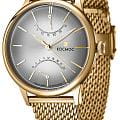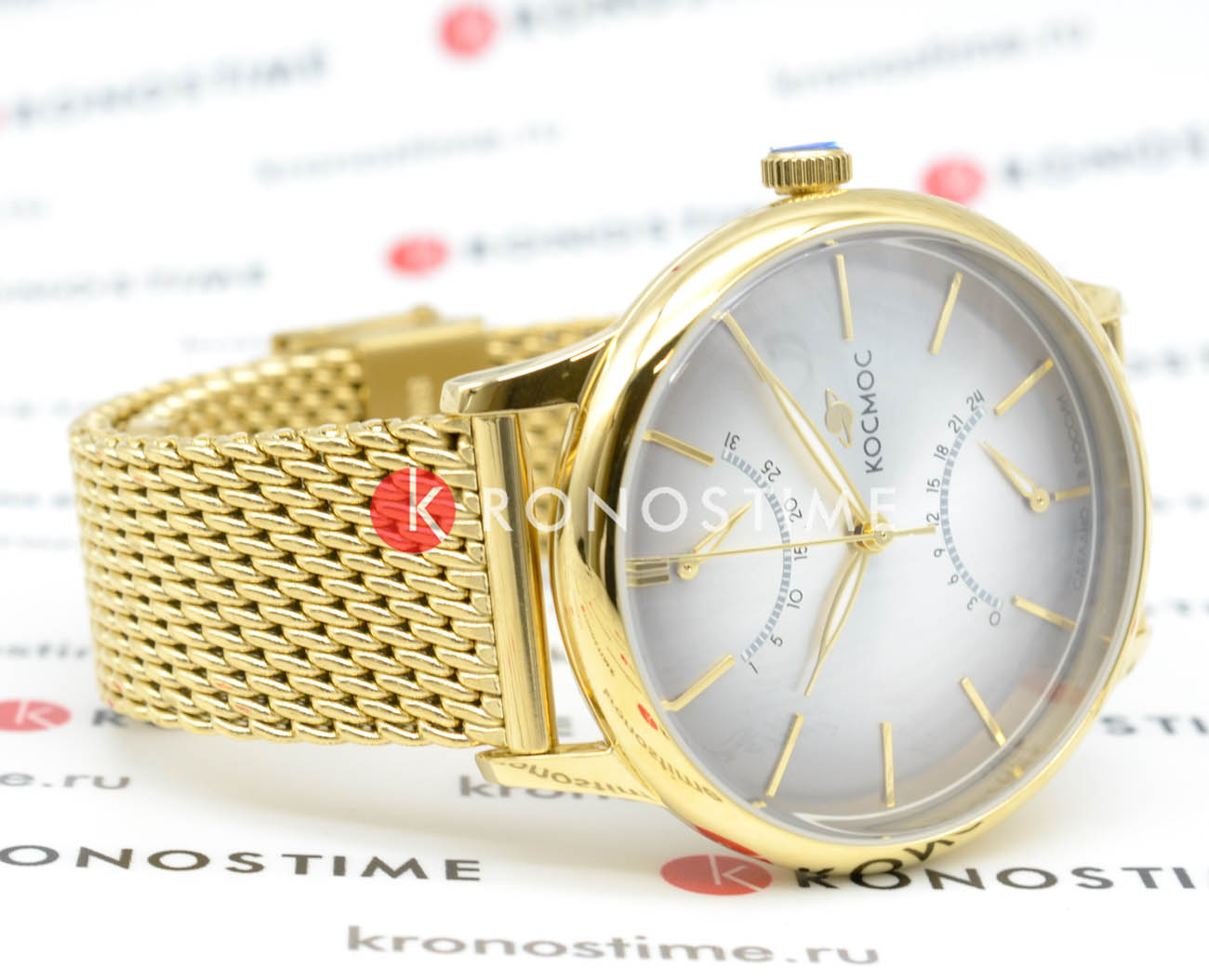 Мужские наручные часы Космос Космопорт K 058.20.33 — это сочетание традиций часового искусства 60-70-х годов и футуристического дизайна, вдохновленного космическими исследованиями. Они не только служат напоминанием о прошлом, но и побуждают задуматься о будущем, позволяя наслаждаться качеством и смыслом, вложенными в каждую деталь. Полированный корпус часов выполнен в виде силуэта летающей тарелки благодаря выпуклым формам стекла и нижней части корпуса. Стальные ушки, которые напоминают опоры летающей тарелки, завершает общий образ. На задней крышке часов выгравирован фантазийный сюжет – космическая станция будущего. Циферблат светло-серого цвета выполнен в ретро стиле с закруглёнными краями, что требует применения сложной технологии производства, характерной для часов прошлых лет. Кончик секундной стрелки повторяет эту форму, а на выпуклом градиентном циферблате выполнена шлифовка, напоминающая солнечные лучи. Индексы, изготовленные вручную и закрепленные на двух штифтах, добавляют изысканности. Также присутствуют ретроградные индикаторы даты и второго времени (24 часа), которые возвращаются в исходное положение одним движением. Люминесцентное покрытиеЛюминесцентное покрытиеПозволяет считывать показания времени в темноте. Производители наносят на стрелки, часовые индексы, безель или поверхность циферблата светонакопительный состав, дающий холодное свечение. на часовой и минутной стрелках, а также на стрелках ретроградных индикаторов и окантовке циферблата создает эффект светящегося ореола в темноте. Форма минерального стеклаМинеральное стеклоМинеральное стекло представляет собой искусственно выращенный минерал кварца. Такое стекло отличается особой устойчивостью к повреждениям и царапинам. Уступает по некоторым качествам сапфировому стеклу., представляющего собой двояковыпуклую конструкцию, тщательно проработана. Такое стекло не искажает изображение на циферблате, потому что внутренняя поверхность остаётся плоской, создавая эффект линзы. Производственный процесс для достижения двух параллельно изогнутых поверхностей очень сложен, и требуется высокая точность, чтобы избежать повреждения стекла. Часы комплектуются стальным браслетом миланского плетения, который дополнительно защищает от случайного падения. Корпус и браслет часов изготовлены из гипоаллергенной стали с IP-покрытиемIP-покрытиеМетод ионного напыления. Демонстрирует повышенную устойчивость к истиранию, окислению и химическим веществам. Под воздействием высокого давления и температуры около 1500°C молекулы металла надёжно соединяются с частицами корпуса часов., что обеспечивает комфорт при ношении. Заводная головка, застежка и ремешок украшены фирменным логотипом, подчеркивающим индивидуальность данной модели.