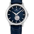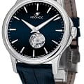 Мужские наручные часы Космос Телескоп K 304.16.36 —  это уникальная лимитированная серия под названием Телескоп, посвящена аппарату приоткрывающего взгляду бескрайние дали космического пространства. Апертура открытого баланса модели по форме напоминает круглую линзу телескопа. Сквозь это окошко, расположенное на черном циферблате, также можно увидеть много интересного: ту самую систему «баланс-спираль» автоматического механизма, которая отвечает за точность хода. Корпус часов выполнен из нержавеющей стали, классической круглой формы и достаточно тонкий для механических моделей. Это стало возможным благодаря использованию механизма Miyota, калибр 9029, с высотой всего 3.9 мм. Циферблат декорирован вертикальной текстурой в ретро-стиле, по которой движутся крупные часовая и минутная стрелки, имеющие люминесцентное покрытиеЛюминесцентное покрытиеПозволяет считывать показания времени в темноте. Производители наносят на стрелки, часовые индексы, безель или поверхность циферблата светонакопительный состав, дающий холодное свечение., позволяющее определять время даже в темноте. Циферблат защищен прочным сапфировым стеклом с антибликовым покрытиемСапфировое стеклоПрочный и надёжный материал из кристалла сапфира синтетического происхождения, характеризующийся особой твёрдостью и устойчивостью к царапинам и повреждениям., обеспечивающим отличную читаемость показаний в любых условиях. Прозрачная задняя крышка, закрепленная на четырех винтах, демонстрирует механизм и содержит выгравированный индивидуальный номер экземпляра  хх/50, отражающий лимитированный тираж всего в 50 штук. Ремешок часов сделан из натуральной кожи синего цвета и оснащен удобной застёжкой «бабочка» с кнопкамиЗастёжка "бабочка"Такой вид застёжки дополняется предохранителями, помогающими избежать случайного раскрытия браслета. Обладают изящным исполнением. , которая сводит к минимуму вероятность потери. Модель Телескоп сочетает классический дизайн и универсальность, прекрасно подходя как к деловому костюму, так и к более повседневным образам.