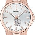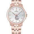 Мужские наручные часы Космос Телескоп K 304.40.33 —  это уникальная лимитированная серия под названием Телескоп, посвящена аппарату приоткрывающего взгляду бескрайние дали космического пространства. Апертура открытого баланса модели по форме напоминает круглую линзу телескопа. Сквозь это окошко, расположенное на серебристом циферблате, также можно увидеть много интересного: ту самую систему «баланс-спираль» автоматического механизма, которая отвечает за точность хода. Корпус часов выполнен из нержавеющей стали с PVDPVDУльтратонкое покрытие наносится в технике вакуумного напыления, сочетает в себе нитрид титана особой прочности со слоем золота или оксида хрома. Несёт в себе декоративную или защитную функцию. покрытием, классической круглой формы и достаточно тонкий для механических моделей. Это стало возможным благодаря использованию механизма Miyota, калибр 9029, с высотой всего 3.9 мм. Циферблат декорирован вертикальной текстурой в ретро-стиле, по которой движутся крупные часовая и минутная стрелки, имеющие люминесцентное покрытиеЛюминесцентное покрытиеПозволяет считывать показания времени в темноте. Производители наносят на стрелки, часовые индексы, безель или поверхность циферблата светонакопительный состав, дающий холодное свечение., позволяющее определять время даже в темноте. Циферблат защищен прочным сапфировым стеклом с антибликовым покрытиемСапфировое стеклоПрочный и надёжный материал из кристалла сапфира синтетического происхождения, характеризующийся особой твёрдостью и устойчивостью к царапинам и повреждениям., обеспечивающим отличную читаемость показаний в любых условиях. Прозрачная задняя крышка, закрепленная на четырех винтах, демонстрирует механизм и содержит выгравированный индивидуальный номер экземпляра  хх/50, отражающий лимитированный тираж всего в 50 штук. Браслет изготовлен из нержавеющей стали с PVDPVDУльтратонкое покрытие наносится в технике вакуумного напыления, сочетает в себе нитрид титана особой прочности со слоем золота или оксида хрома. Несёт в себе декоративную или защитную функцию. покрытием и оснащен удобной застёжкой «бабочка» с кнопкамиЗастёжка "бабочка"Такой вид застёжки дополняется предохранителями, помогающими избежать случайного раскрытия браслета. Обладают изящным исполнением. , которая сводит к минимуму вероятность потери. Модель Телескоп сочетает классический дизайн и универсальность, прекрасно подходя как к деловому костюму, так и к более повседневным образам.
