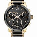 Мужские швейцарские часы-хронографХронографФункция позволяет измерять отрезки времени с особой точностью: часы, минуты, секунды. Верным признаком хронографа является наличие на циферблате 3 дополнительных окошек-счётчиков. L'Duchen Aerostat Chrono D 232.20.31,кварцевый механизм с высокой точностью. Сапфировое стеклоСапфировое стеклоПрочный и надёжный материал из кристалла сапфира синтетического происхождения, характеризующийся особой твёрдостью и устойчивостью к царапинам и повреждениям. устойчивое к появлению царапин, обладающее высокой прозрачностью. Корпус часов выполнен из нержавеющей стали с PVD-покрытиемPVDУльтратонкое покрытие наносится в технике вакуумного напыления, сочетает в себе нитрид титана особой прочности со слоем золота или оксида хрома. Несёт в себе декоративную или защитную функцию.. БезельБезельВнешний ободок, закрепляющий стекло. В спортивных часах так называется поворотное кольцо с делениями на циферблате, выполняет роль таймера – замеряет отрезки времени на шкале. Неподвижный безель – элемент декора. Однонаправленно вращающийся безель на дайверских часах позволяет фиксировать моменты погружения и выныривания на поверхность. из керамики. Стрелки с люминесцентным покрытиемЛюминесцентное покрытиеПозволяет считывать показания времени в темноте. Производители наносят на стрелки, часовые индексы, безель или поверхность циферблата светонакопительный состав, дающий холодное свечение.. Класс водозащиты: 100 метров, позволит плавать, нырять и заниматься другими водными видами спорта. Стальной браслет с PVD-покрытиемPVDУльтратонкое покрытие наносится в технике вакуумного напыления, сочетает в себе нитрид титана особой прочности со слоем золота или оксида хрома. Несёт в себе декоративную или защитную функцию. и керамическими вставками на застёжке «бабочка» с кнопкамиЗастёжка "бабочка"Такой вид застёжки дополняется предохранителями, помогающими избежать случайного раскрытия браслета. Обладают изящным исполнением. .