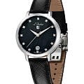 Женские швейцарские часы L'Duchen Eternity D 801.11.31, кварцевый механизм с высокой точностью. Сапфировое стеклоСапфировое стеклоПрочный и надёжный материал из кристалла сапфира синтетического происхождения, характеризующийся особой твёрдостью и устойчивостью к царапинам и повреждениям. устойчивое к появлению царапин, обладающее высокой прозрачностью. Корпус часов выполнен из нержавеющей стали. Окошко даты находится в положении 6 часов. Класс водозащиты: 50 метров, позволит защитить корпус от случайных брызг или капель дождя. Кожаный ремешок на застёжке «бабочка» с кнопкамиЗастёжка "бабочка"Такой вид застёжки дополняется предохранителями, помогающими избежать случайного раскрытия браслета. Обладают изящным исполнением. .