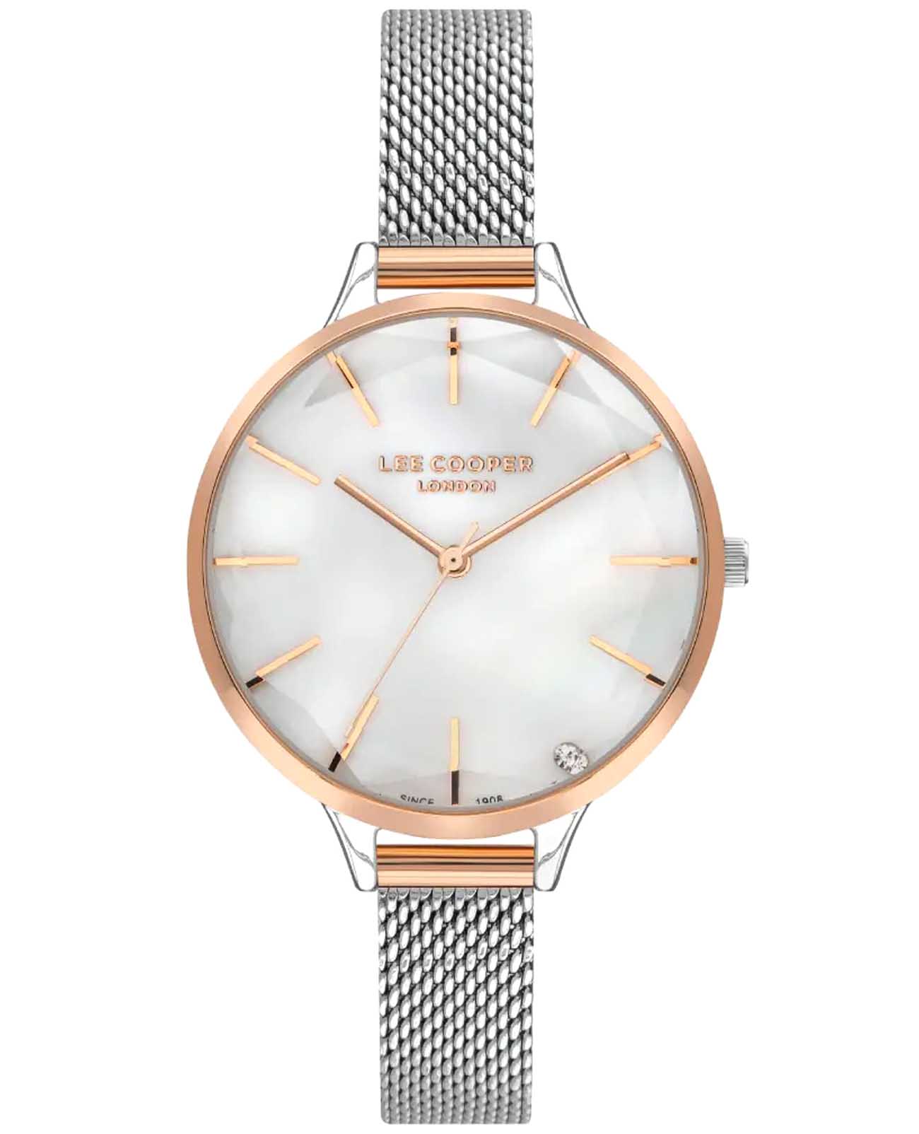 Женские наручные часы Lee Cooper LC07433.520 — это элегантная модель с утончённым дизайном. Корпус диаметром 36 мм выполнен из нержавеющей стали, что придаёт часам изысканный вид. Перламутровый циферблат украшен изящными метками, стрелками и кристаллом на 5 часов обеспечивая удобное считывание времени. Циферблат защищён минеральным стекломМинеральное стеклоМинеральное стекло представляет собой искусственно выращенный минерал кварца. Такое стекло отличается особой устойчивостью к повреждениям и царапинам. Уступает по некоторым качествам сапфировому стеклу., устойчивым к царапинам. Часы работают на кварцевом механизме, обеспечивая точность хода. Браслет из нержавеющей стали с раскладной застёжкойРаскладная застёжкаТакой тип застёжки используется только на браслетах из металла. Она никогда не раскрывается полностью, происходит разделение на 2 и более частей. Раскладывающая застёжка снизит вероятность потери часов к минимуму. гарантирует комфортное ношение и надёжную фиксацию на запястье. Водозащита 30 метров защищает часы от случайных брызг и дождя, делая их подходящими для повседневного использования. БезельБезельВнешний ободок, закрепляющий стекло. В спортивных часах так называется поворотное кольцо с делениями на циферблате, выполняет роль таймера – замеряет отрезки времени на шкале. Неподвижный безель – элемент декора. Однонаправленно вращающийся безель на дайверских часах позволяет фиксировать моменты погружения и выныривания на поверхность. с IP-покрытиемIP-покрытиеМетод ионного напыления. Демонстрирует повышенную устойчивость к истиранию, окислению и химическим веществам. Под воздействием высокого давления и температуры около 1500°C молекулы металла надёжно соединяются с частицами корпуса часов..